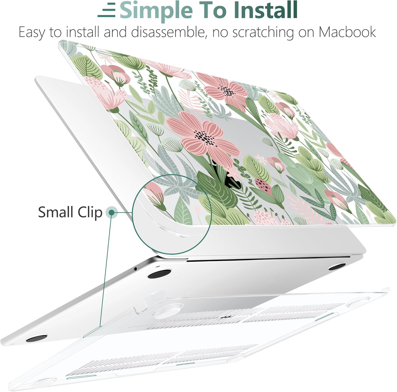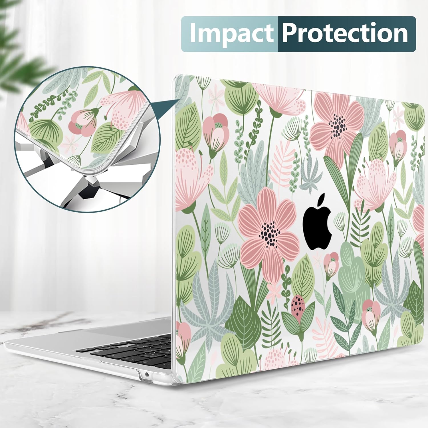 TWOLSKOO Compatible with M4 MacBook Air 15 inch Case 2025-2023 Released Model M4 A3241 M3 A3114 M2 A2941, Plastic Hard Shell & Screen Protector & Keyboard Cover & Trackpad Film, Leaves Flowers X732