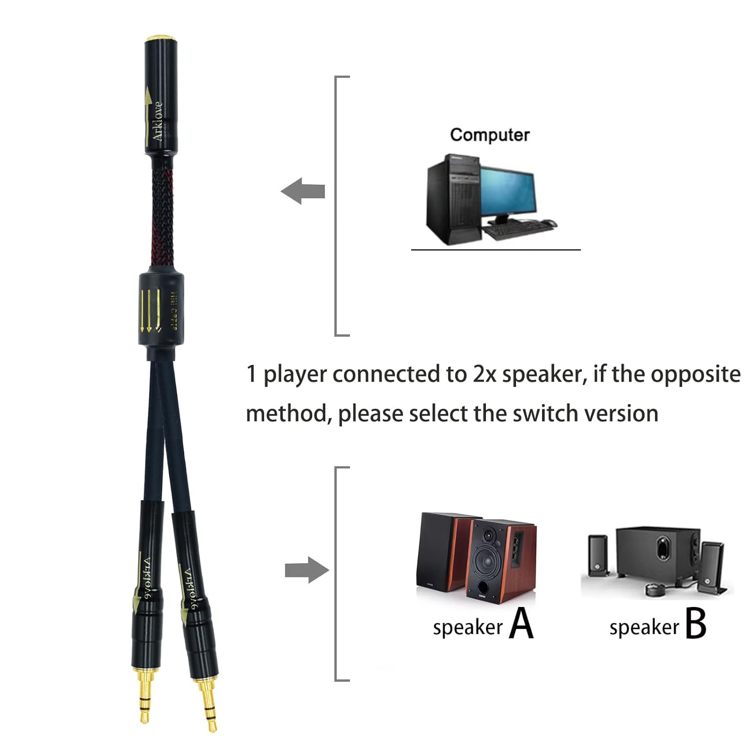 Arklove 5ft Shielded 1/8" aux Input 3.5mm Female 2X 3.5 Output Splitter Stereo Audio Video Cable Out 3.5 Male to Two 3.5 Male Mini Jack in Dual Speaker