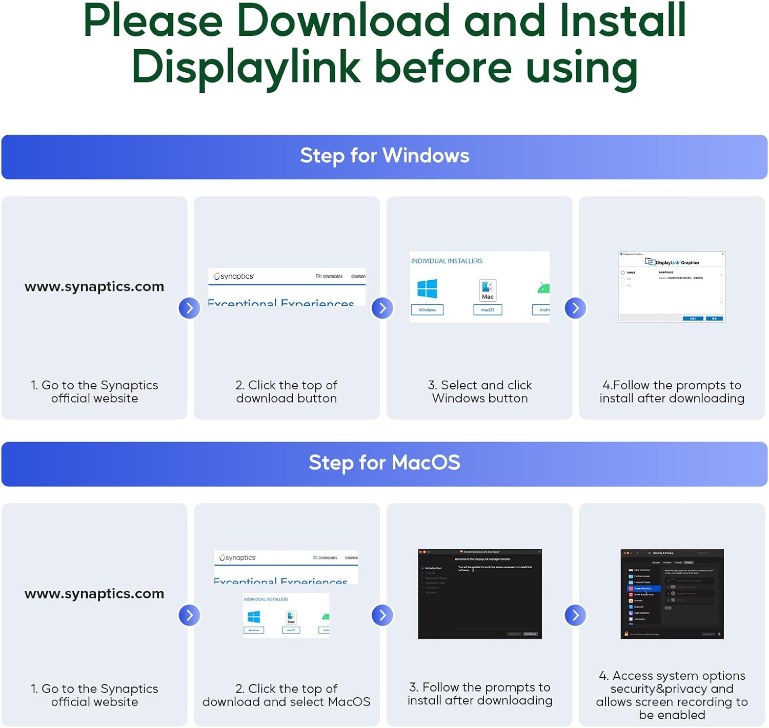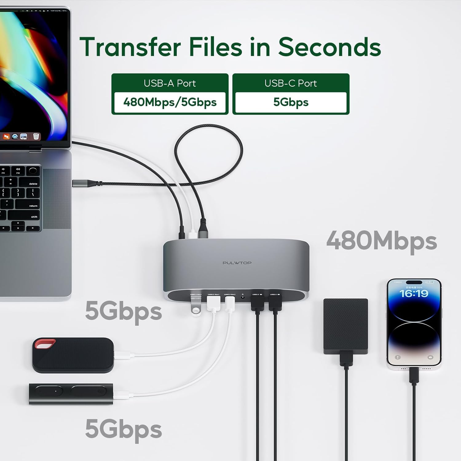 - TRIPLE DISPLAY DOCKING FOR MACBOOK M1/M2/M3: Breaking limitation of the M1/M2/M3 chip, PULWTOP displaylink dock supports your mac to expand 3 different monitors by installing the DisplayLink driver. Compatible with Macbook, Windows, Chrome OS, Ubuntu and Android. NOTE: 1) Linux/Unix is not supported. 2) Must pre-install the DisplayLink Driver to ensure proper media display.