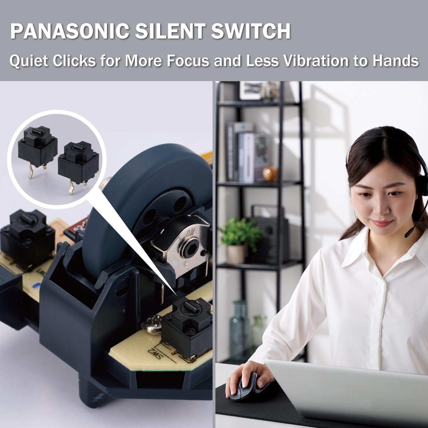 - SILENT CLICK SWITCH - A Silent switch does not make a ticking sound. You can use mouse during the meeting, early in the morning and night work, even when you work at home, without worrying about the sounds around you.