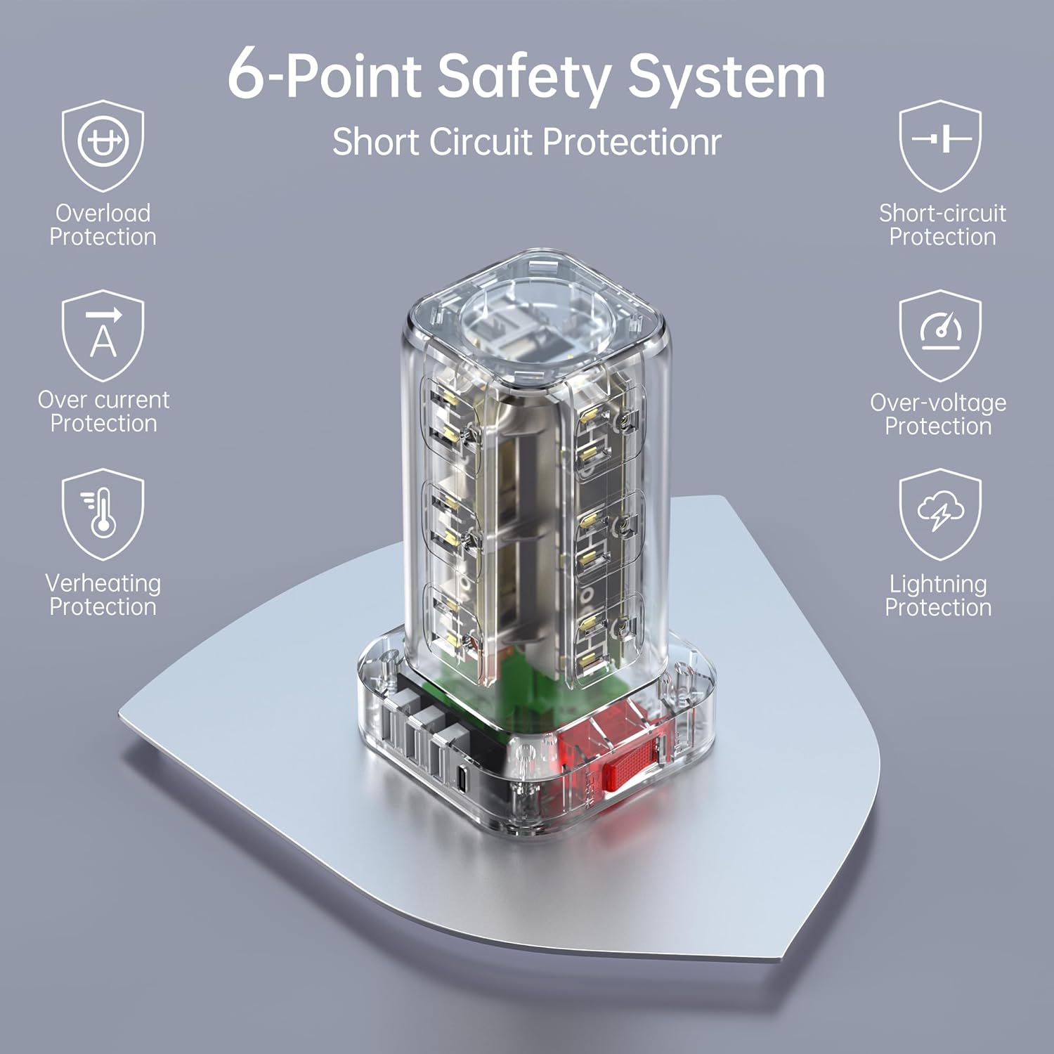 - 【All-Round Protected Surge Protector】 This power strip outlet is 8- SECURITY OVERLOAD PROTECTION. This surge protector is made of fireproof ABS plastic material and PVC. The power strip surge protector will automatically cut power to protect connected devices when a voltage surge is detected.
