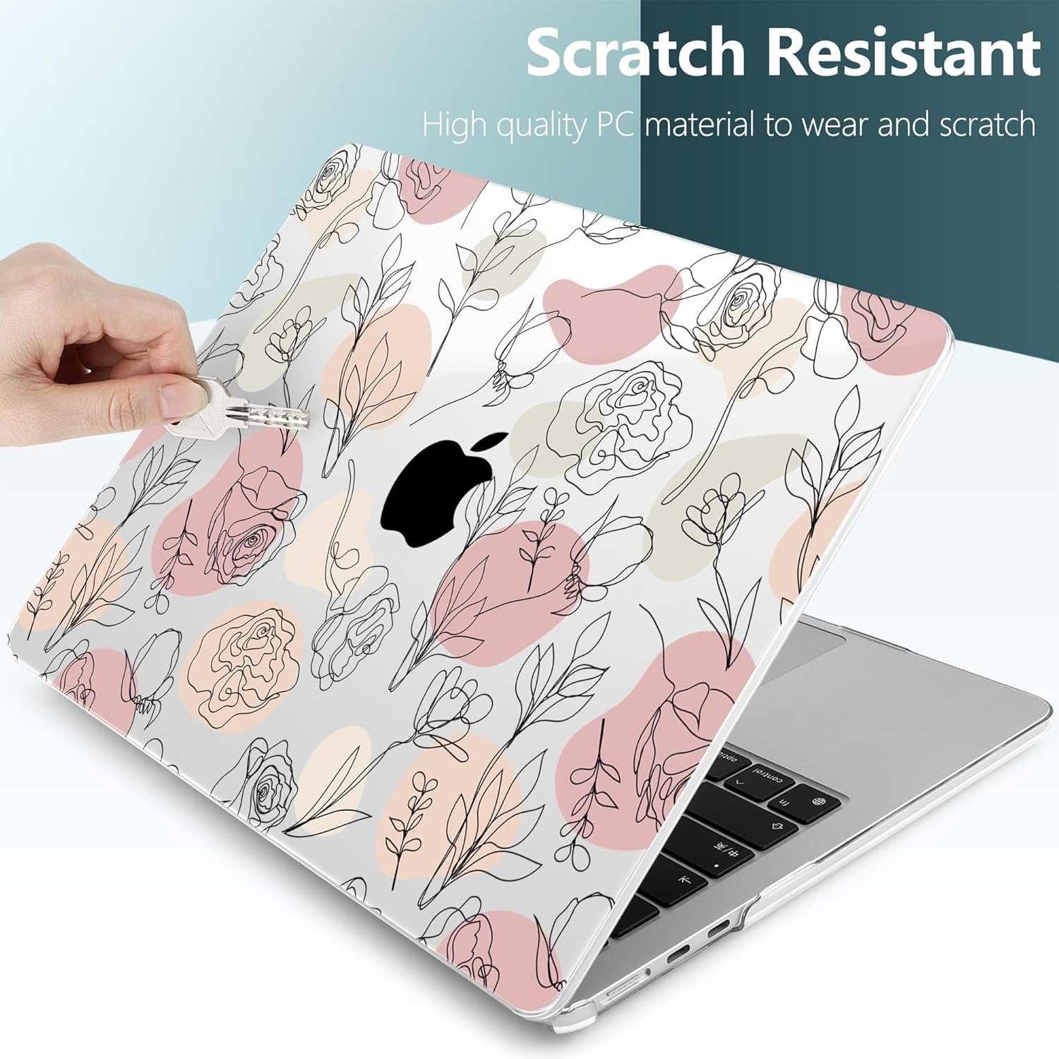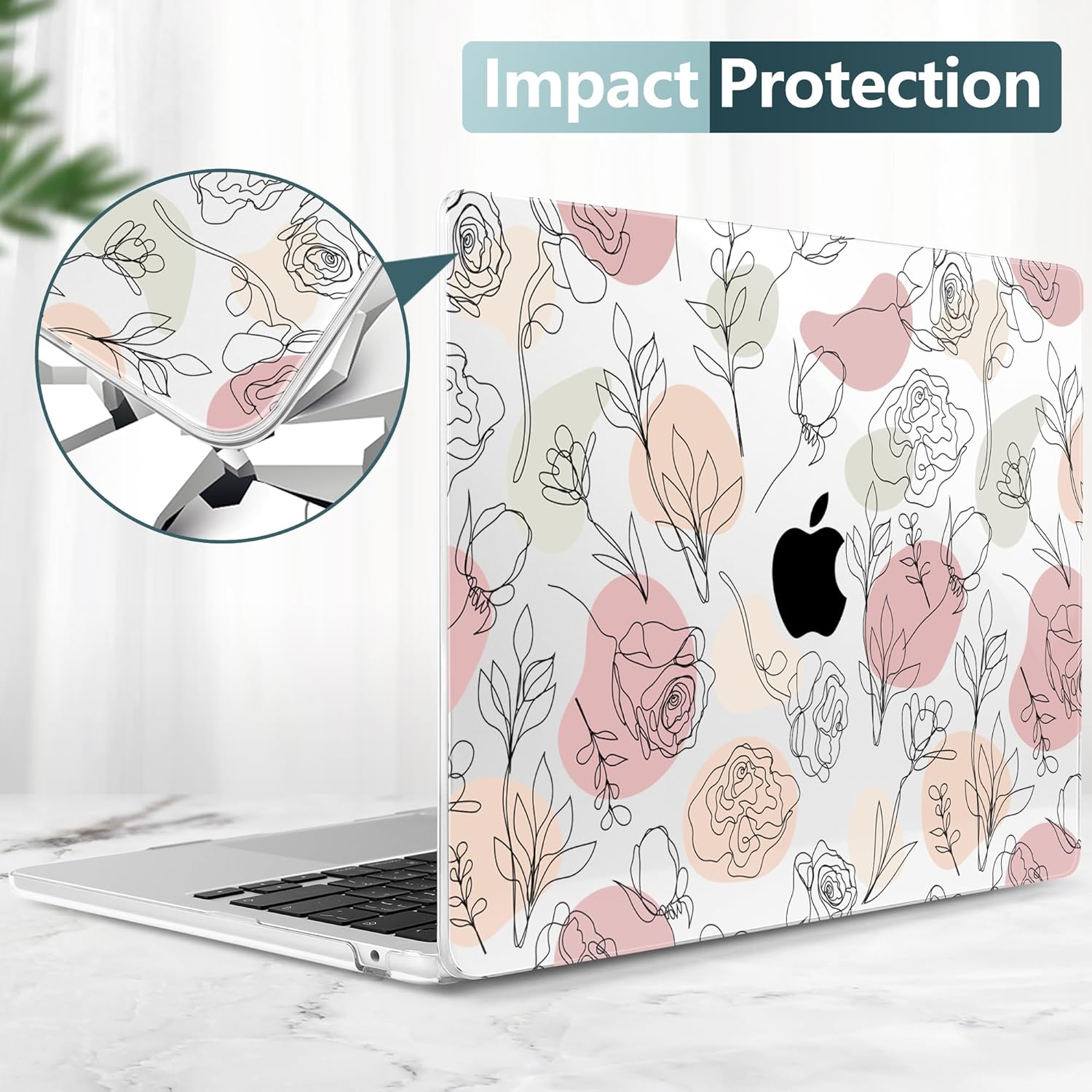 TWOLSKOO Compatible with M4 MacBook Air 15 inch Case 2025-2023 Released Model M4 A3241 M3 A3114 M2 A2941, Plastic Hard Shell & Screen Protector & Keyboard Cover & Trackpad Film, Line Flowers