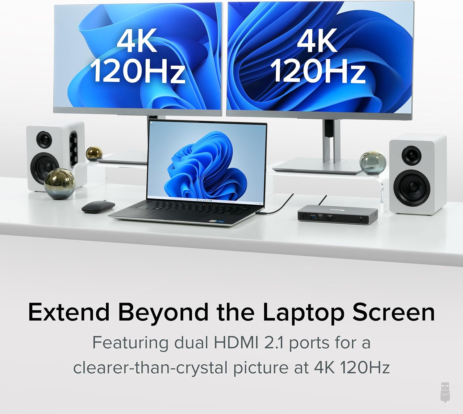 - Dual 4K 120Hz: This USB4 laptop docking station dual monitor lets you extend to one 4k monitor or two at up to 120Hz, or 1x computer monitor at 8K 60Hz. Get a crisp picture that's perfect for detailed tasks like video editing, 3D and graphic rendering, gaming