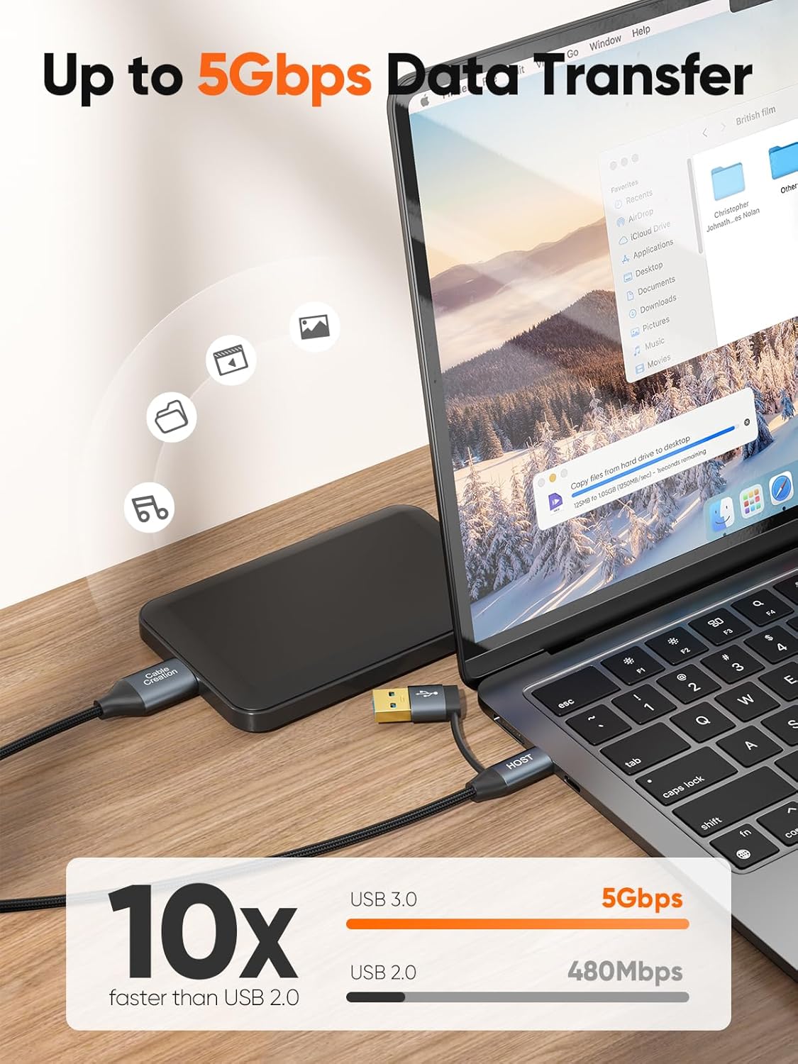 - High-Speed Transfer:Experience fast data transfer speeds of up to 5Gbps with this USB C or USB A to Micro B Cable from CableCreation. You can seamlessly transfer large files, videos, and photos in a matter of seconds.