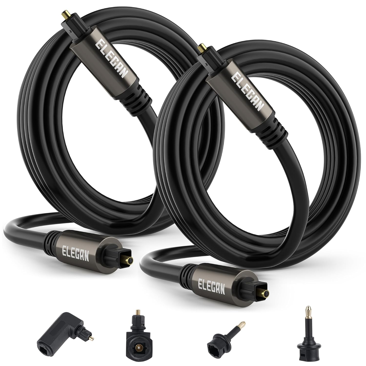 Elecan Optical Audio Cable 12 Ft/2 Pack Digital Audio Toslink Cable Cord-Fiber Optic-Gold Plated-Flexiable&Durable-for Home Theater,Sound Bar,PS4& Xbox-with Right Angled+Mini Toslink Adapters+Ties