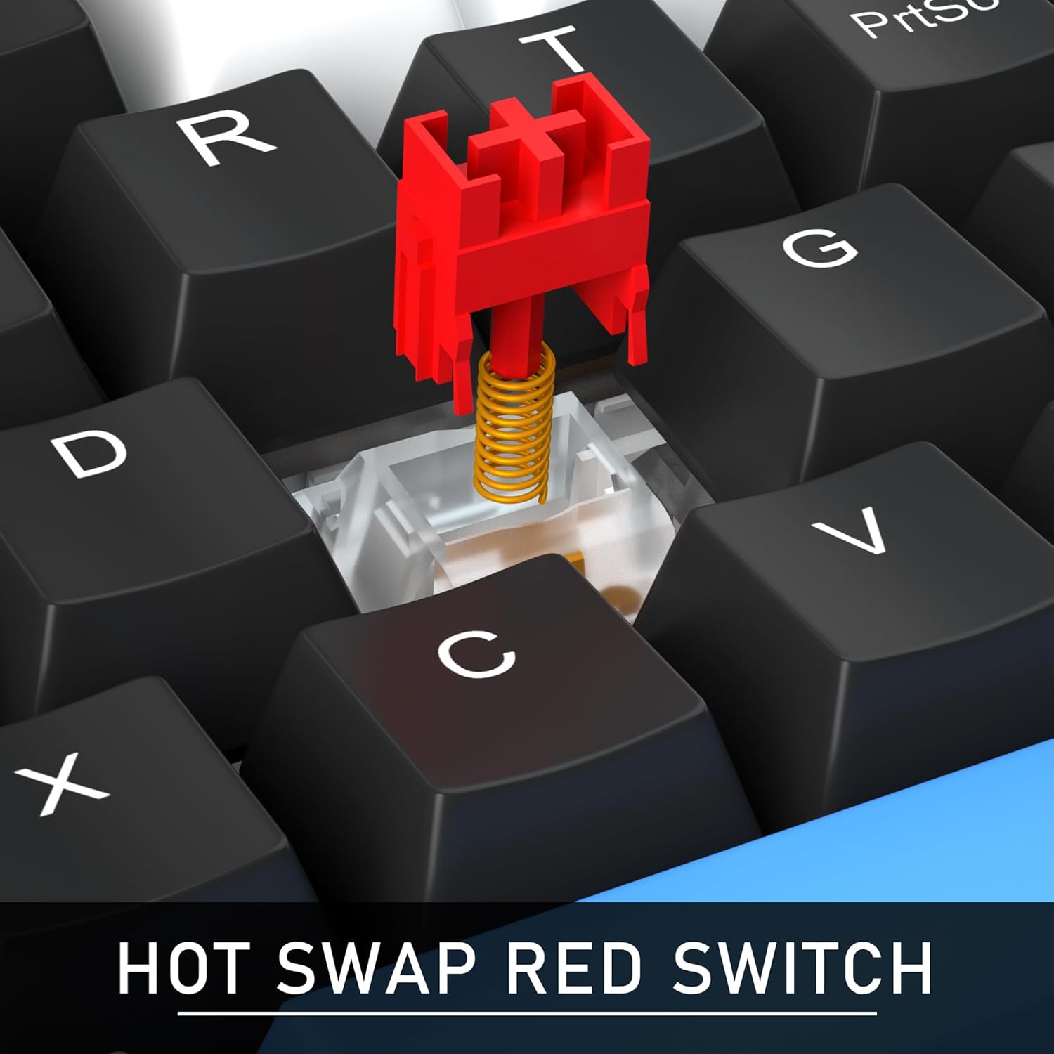 - ✅ [ Linear Red Switches ] Quiet click sound, fast action with small resistance without a tactile bump feel, gamers often prefer Red switches because they are not as springy, and easier to push down faster