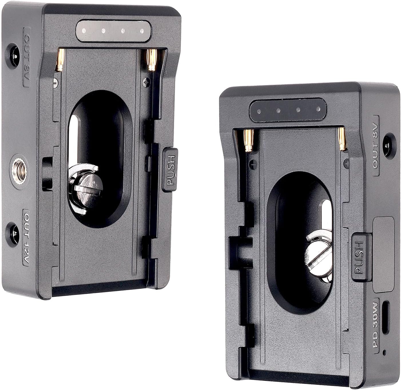 Foto4easy NP-F Battery Power Plate for NP-F970 NP-F960 NP-F770 NP-F550 NP-F570,DC 8V 12V USB-C Outputs 1/4" Cold Shoe Mount