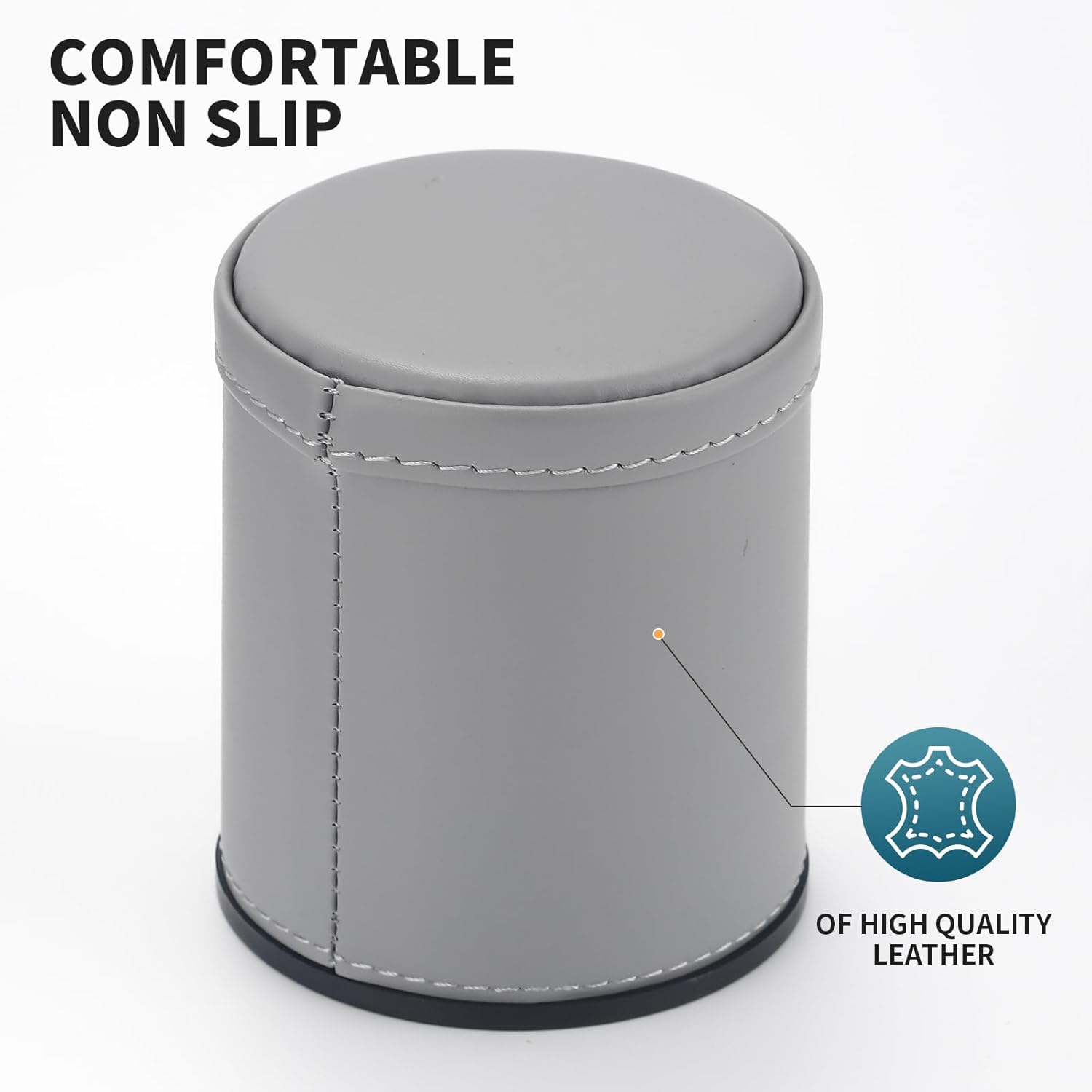 5 Pack PU Leather Dice Cups Velvet Felt-Lined Shaker Cups with 30 Dot Dice for Bar Party Yahtzee Farkle Dice Games, Grey
