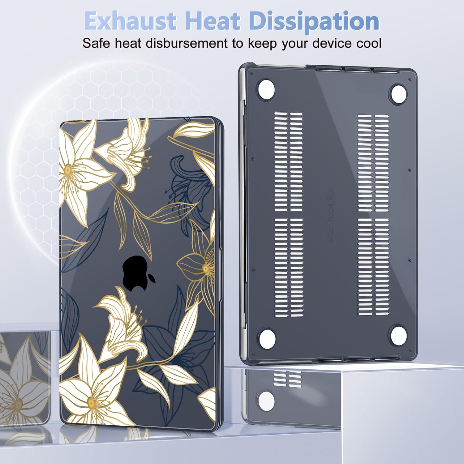 - Exhaust heat dissipation: Two rows of bottom ventilation and four anti-slip silicone rubberized feet, it can keep your device firmly in place all the time, Featuring of bottom ventilation, allowing safe heat disbursement to keep your device cool, Featuring all-inclusive design to fully protect your device from drops, downs, scratches, etc from daily using