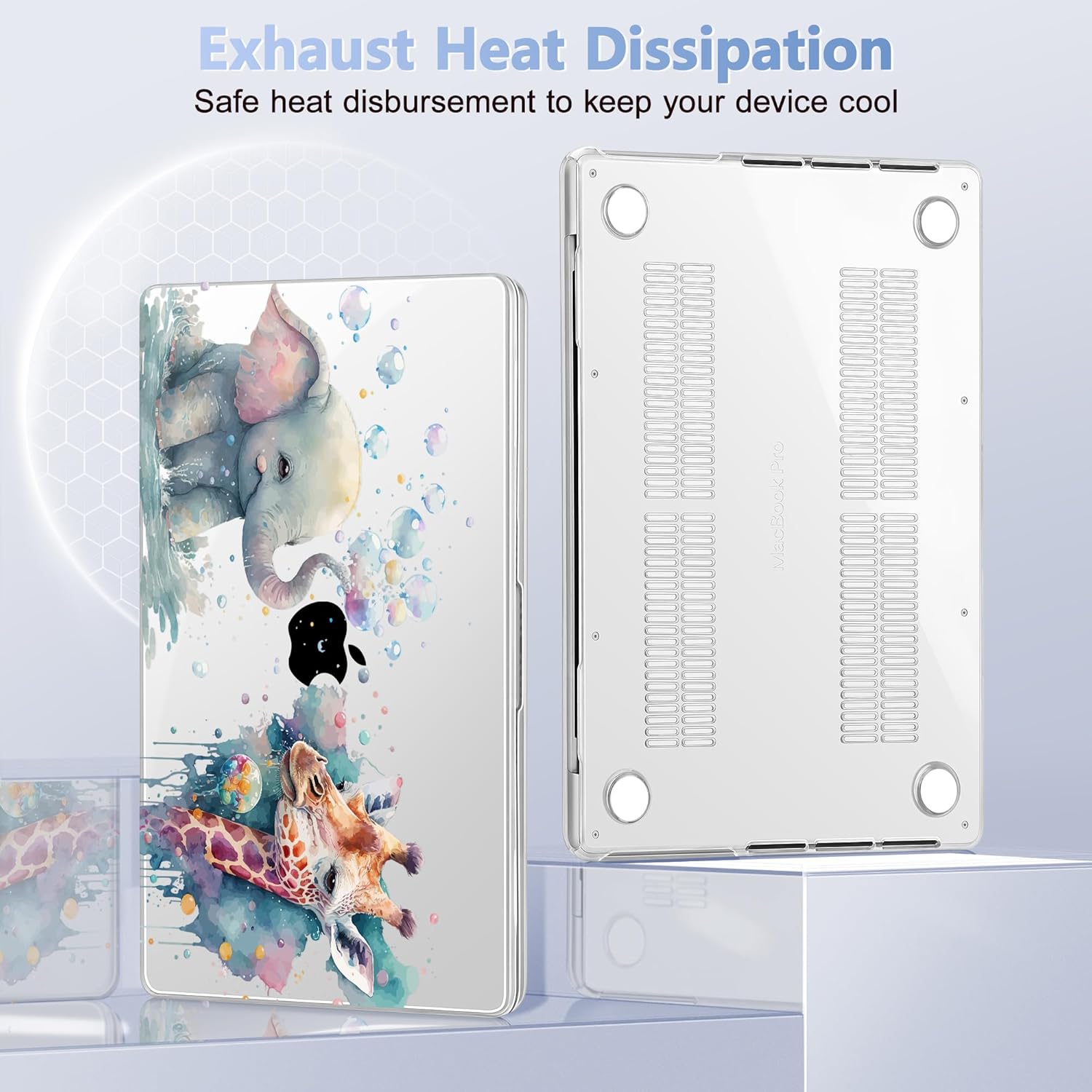 for MacBook Pro 16 inch Case 2021 2022 2023 2024 Release A3186 A3403 M4 A2991 M3 A2780 M2 A2485 M1 Pro/Max, Hard Shell Case with Screen Protector & Keyboard Cover, Elephant & Giraffe