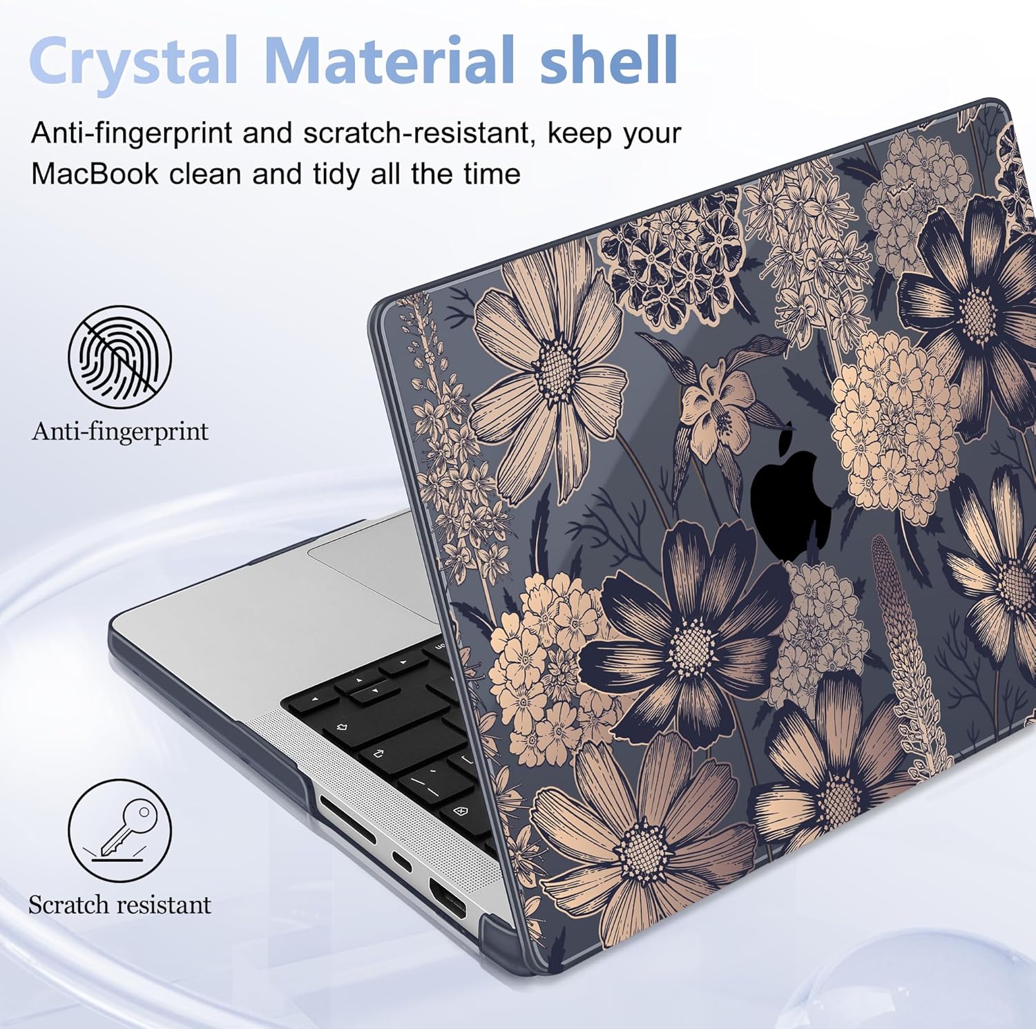 for MacBook Pro 16 inch Case 2021 2022 2023 2024 Release A3186 A3403 M4 A2991 M3 A2780 M2 A2485 M1 Pro/Max, Hard Shell Case with Screen Protector & Keyboard Cover, Spring Floral