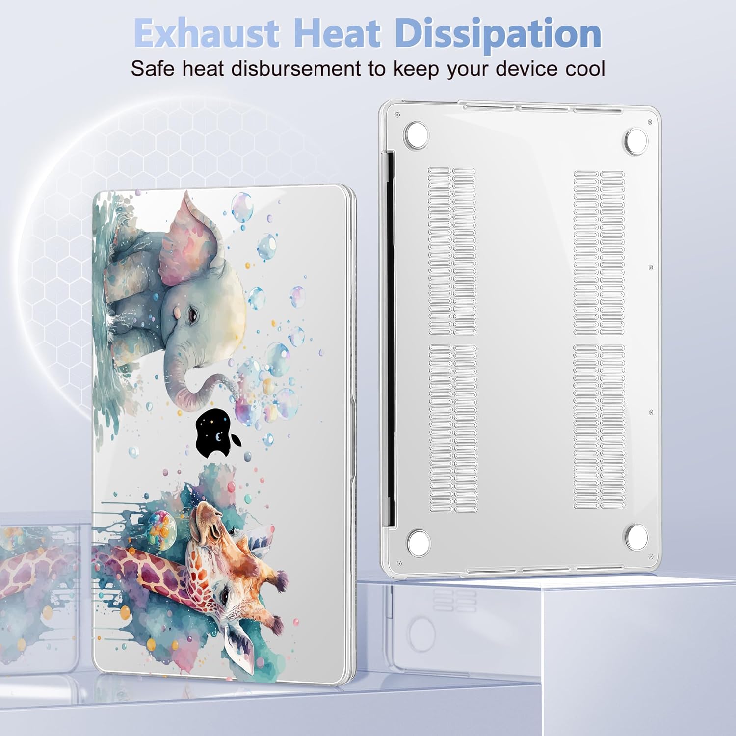 MacBook Pro 16 inch A2141 Case 2019 2020, Plastic Hard Shell Cover with Keyboard Cover & Screen Protector, Elephant & Giraffe