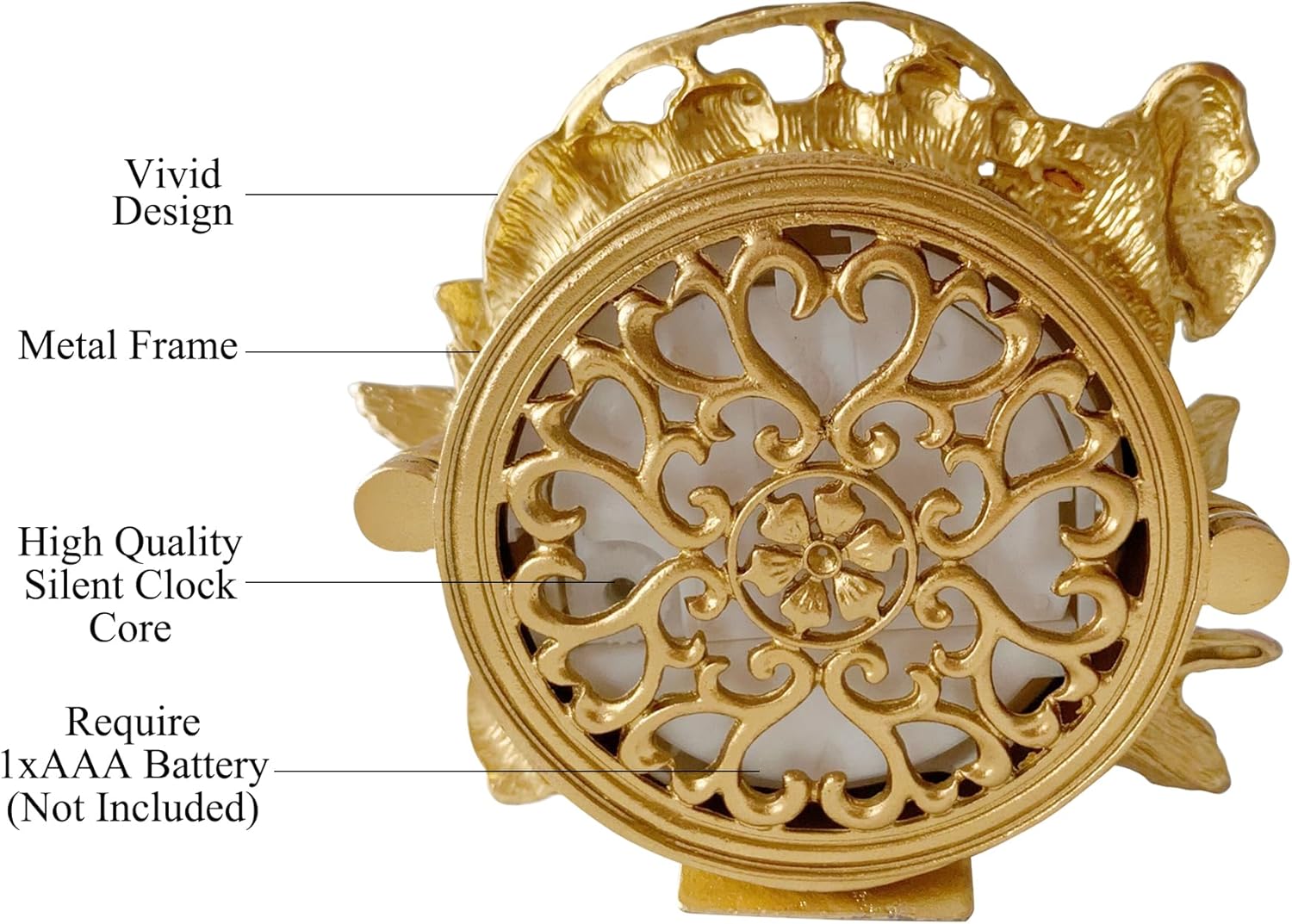- MATERIAL: This vintage table clock is made from real metal and High quality silent clock core. The vintage table top clock is operated by a single AAA battery (not included).