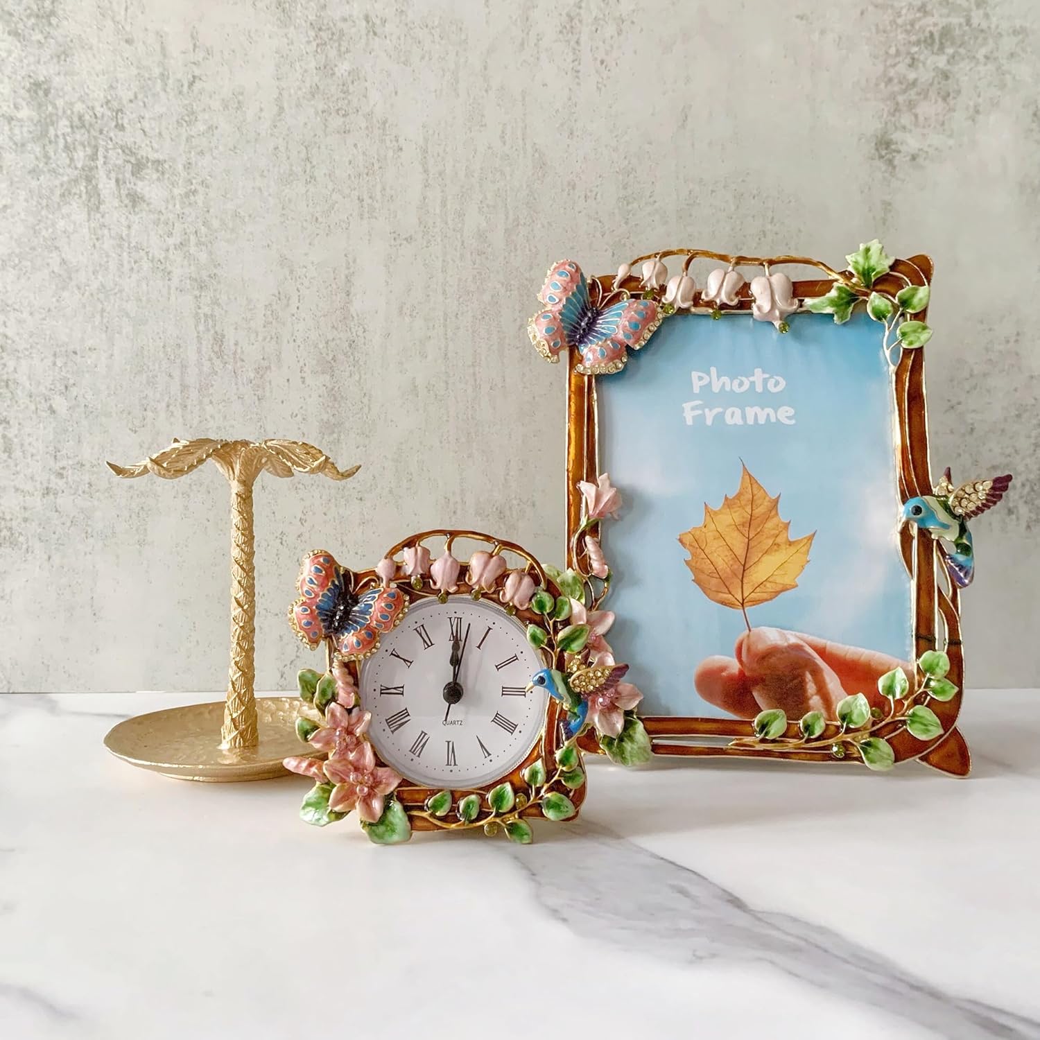 - VINTAGE DESIGN & EXCELLENT CRAFT: Creative design of delicate flower and noble carvings gives these decorative mini table clock an elegant vintage appearance. Each piece of the clock frame is individually Hand-painted, will definitely add vintage and charm to your kitchen, living room, bathroom, or bedroom.