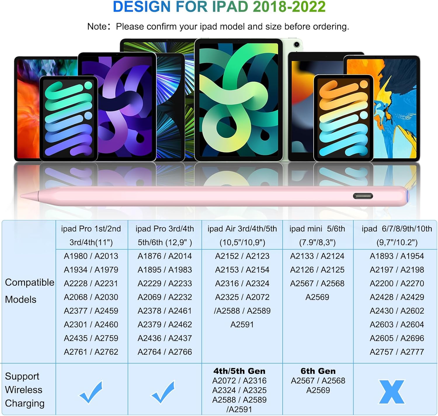 - DESIGN FOR IPAD 2018-2025 - This pencil for ipad is compatible with ipad 6/7/8/9/10/11 generation, ipad Air (M3/3/4/5 generation), ipad Mini (5/6 generation), ipad pro 11"/12.9", this is definitely the best alternative to the pencil 2nd generation. Note: magnetic charging is only for ipad Air 4/5, ipad Mini 6, ipad pro 11/12.9 inch available. If you do not know how to confirm the ipad model number, please contact us.