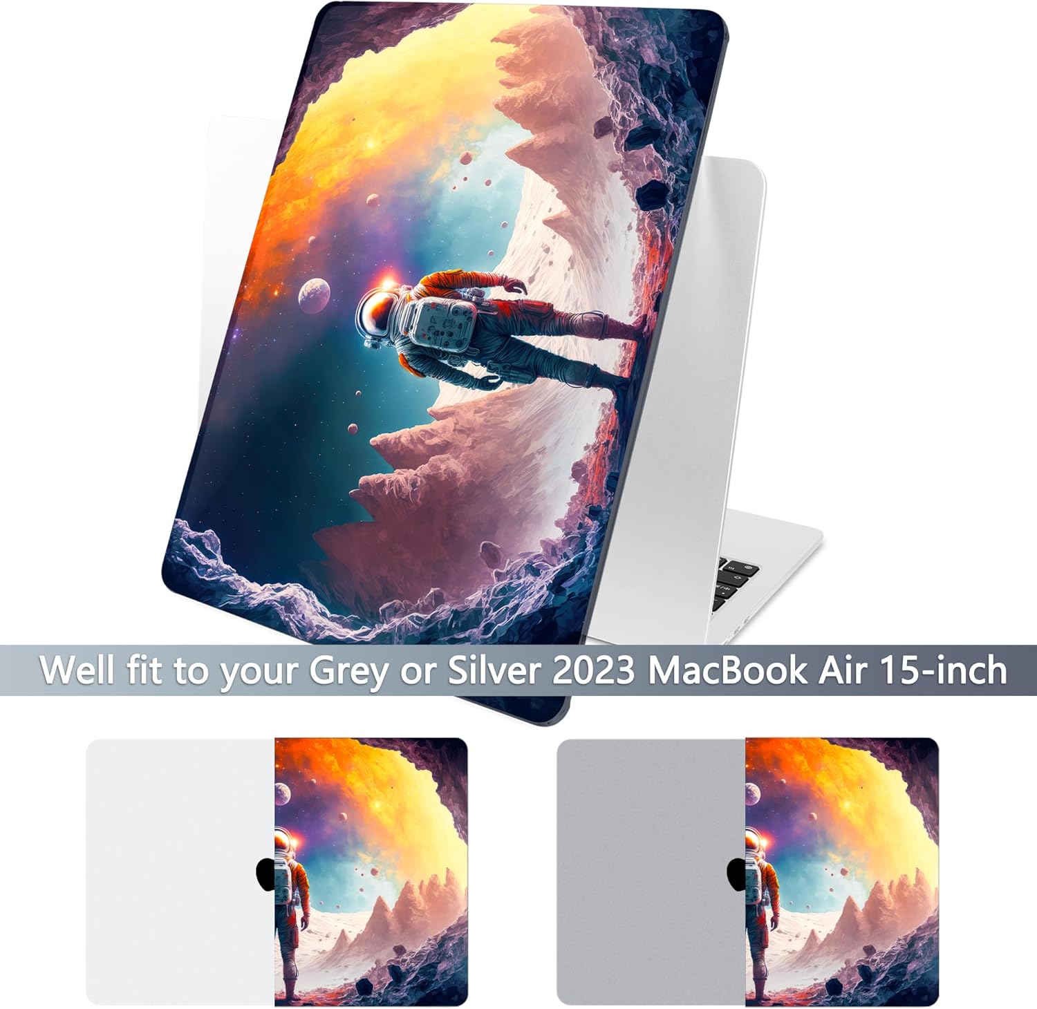 Batianda Premium Case for New MacBook Air 15 inch 2025 2024 2023 with M4 M3 M2 Chip, Designed Black Protective Plastic Hardshell & Keyboard Cover & Screen Protector, Astronaut