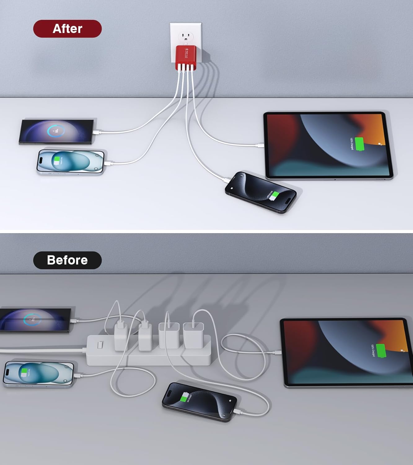 - Universal Compatibility:Due to the special 4-port,the USB charger is compatible with almost all electronic devices,charging adapter for iPhone 16/16 Pro/16 Pro Max/16 Plus/15/15 Pro /15 Pro Max/14/14 Pro/14 Pro Max/13/13 Mini/13 Pro Max/12/12 Pro Max/12 Pro Max/12 Mini/SE 2020/11/11 Pro/11 Pro Max/XR/XS/X/8/7,iPad Air/Pro/Mini,Samsung Galaxy S22/S21/S20/S10/S9/S8/A12/A13/A22/A32/A52/A53/A71/Note 20 10,Tablets,LG,Motorola,Google Pixel and other digital devices compatible