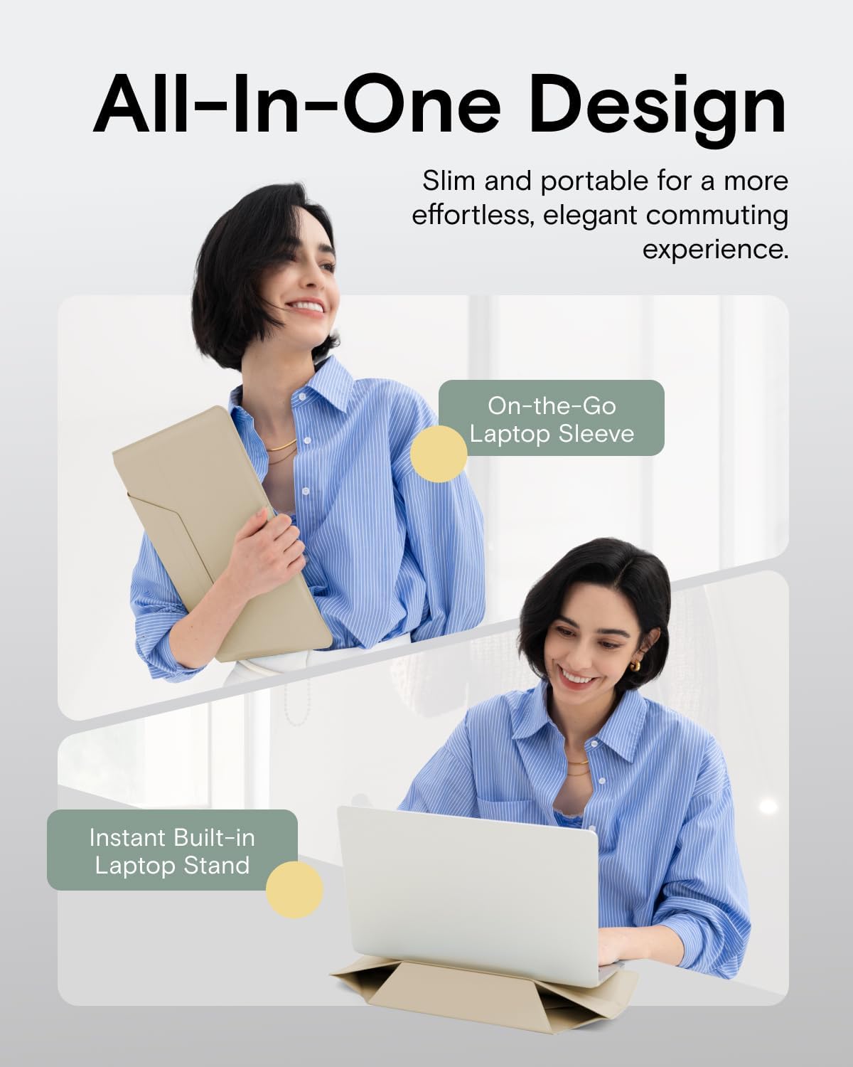 MOFT Laptop Carry Sleeve, 2-in-1 Laptop Bag & Stand for 15"-16" MacBook Air/Pro & Dell/HP/Lenovo/Asus, Stylish Slim Computer Sleeve Bag with Expandable Storage for Computer Accessories, Beach White