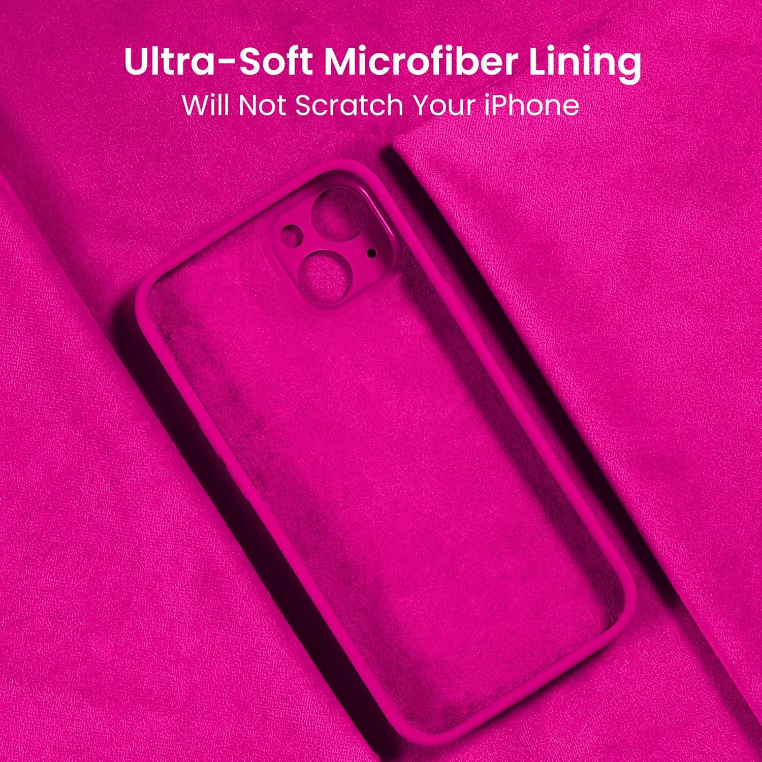FireNova Designed for iPhone 15 Case, Silicone Upgraded [Camera Protection] Phone Case with [2 Screen Protectors], Soft Anti-Scratch Microfiber Lining Inside, 6.1 inch, Hot Pink