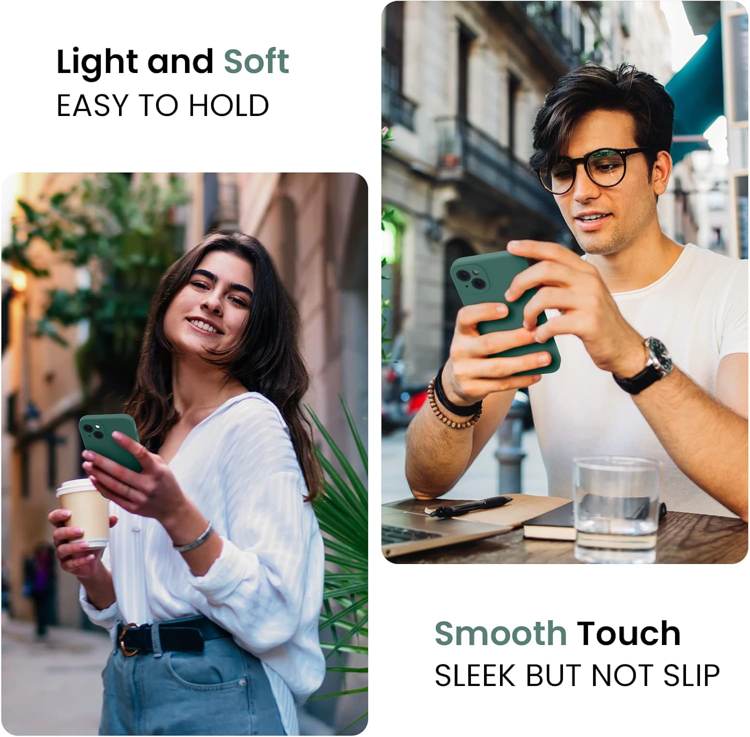 FireNova Designed for iPhone 15 Plus Case, Silicone [Camera Protection] Case with [2 Screen Protectors], Soft Anti-Scratch Microfiber Lining Inside, 6.7 inch, Midnight Green