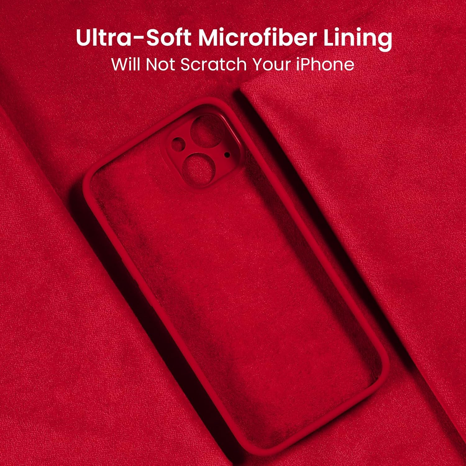 FireNova Designed for iPhone 15 Case, Silicone Upgraded [Camera Protection] Phone Case with [2 Screen Protectors], Soft Anti-Scratch Microfiber Lining Inside, 6.1 inch, Deep Red
