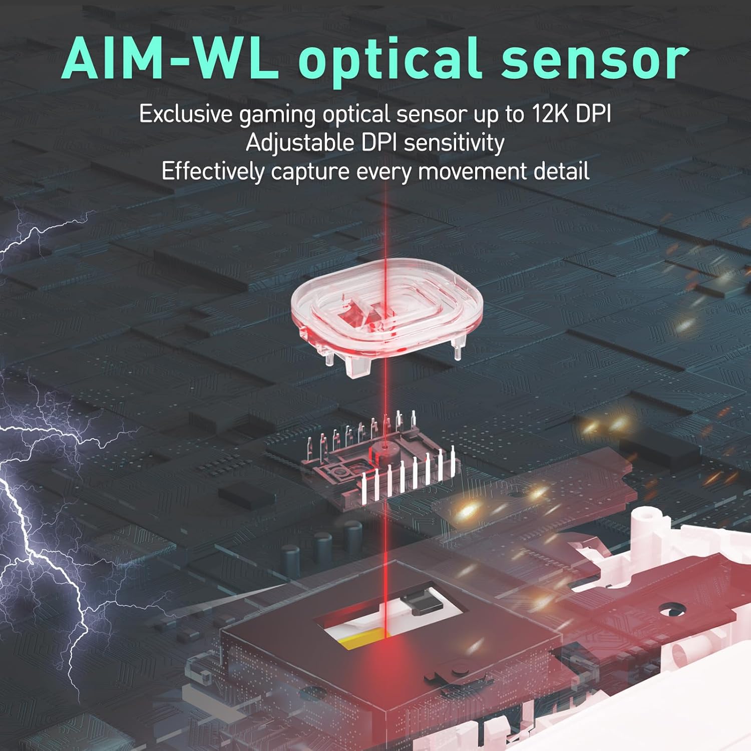 - 【Exclusive AIM-WL Sensor】 provide 1 ms wireless transmission brings stable signal as wired mouse do,with exceptional accuracy and responsiveness thanks to 300 IPS precision and up to 12000 DPI sensitivity.50 million switch brings consistent good clicking feelings even after longtime use.