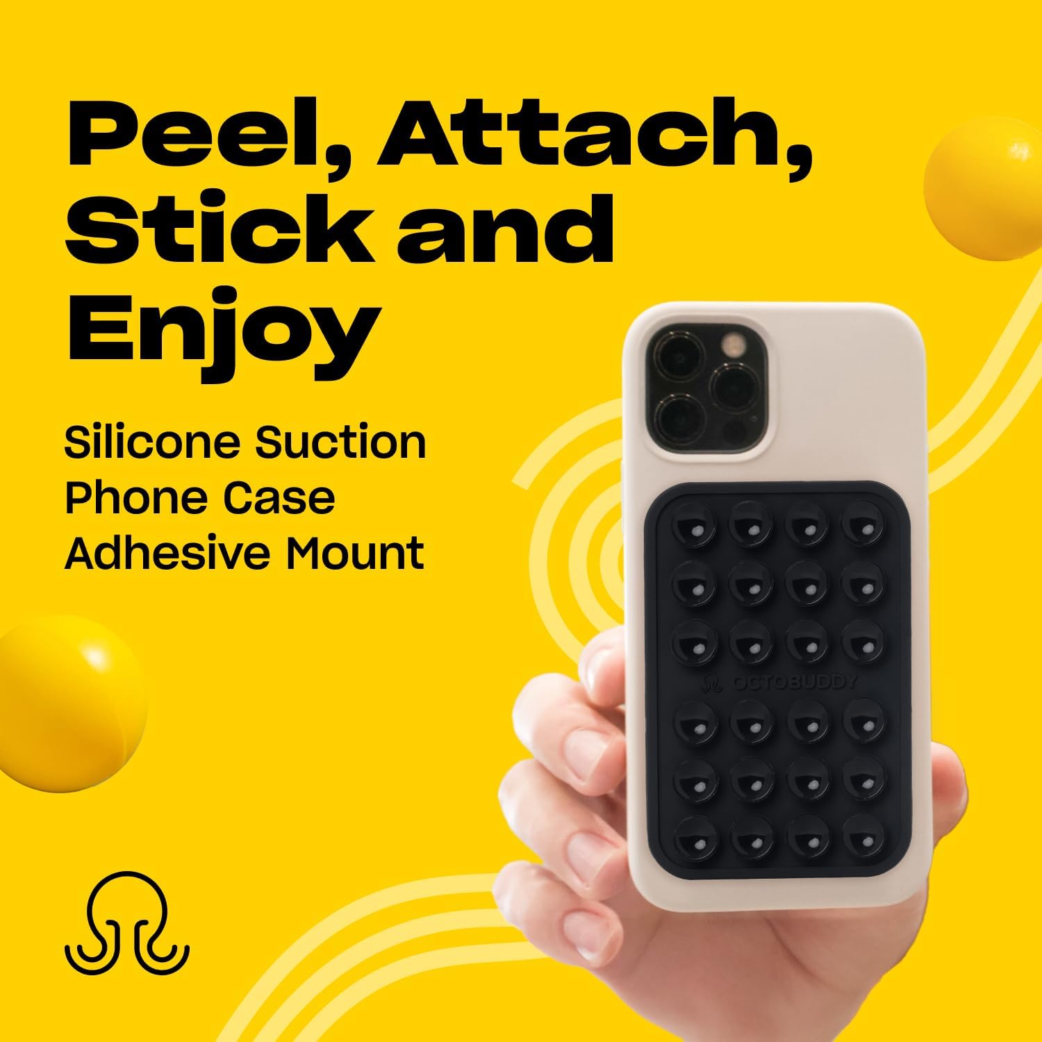 - Peel, attach, stick and enjoy: Quick, hassle-free attachment thanks to its non-slip silicone pad with adhesive backing and its seamless application process