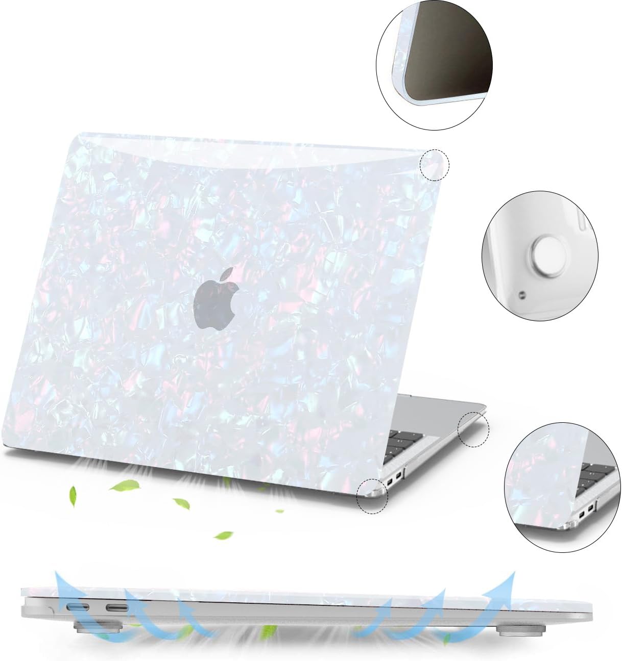 - Package Including: 1 sparkly pearl top case,1 matte clear bottom case, 2 clear keyboard covers and 1 screen protector. If there are any problems with our case, we are here to offer support and solutions