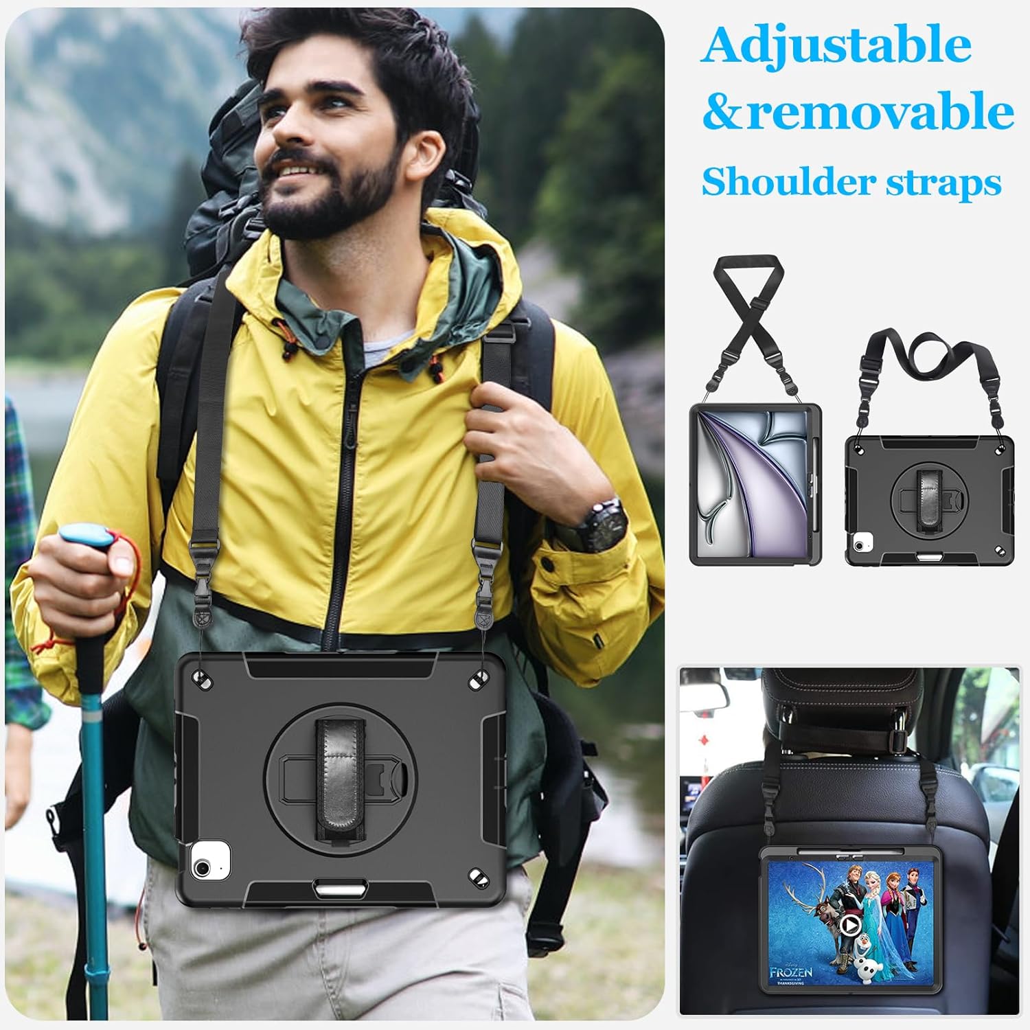 Case for iPad Air 13 Inch M3 2025 & M2 2024: Military Grade Cover for iPad Pro 12.9 6th/5th/4th/3rd Generation W/Screen Protector- Stand- Pencil Holder- Handle- Shoulder Strap- Black