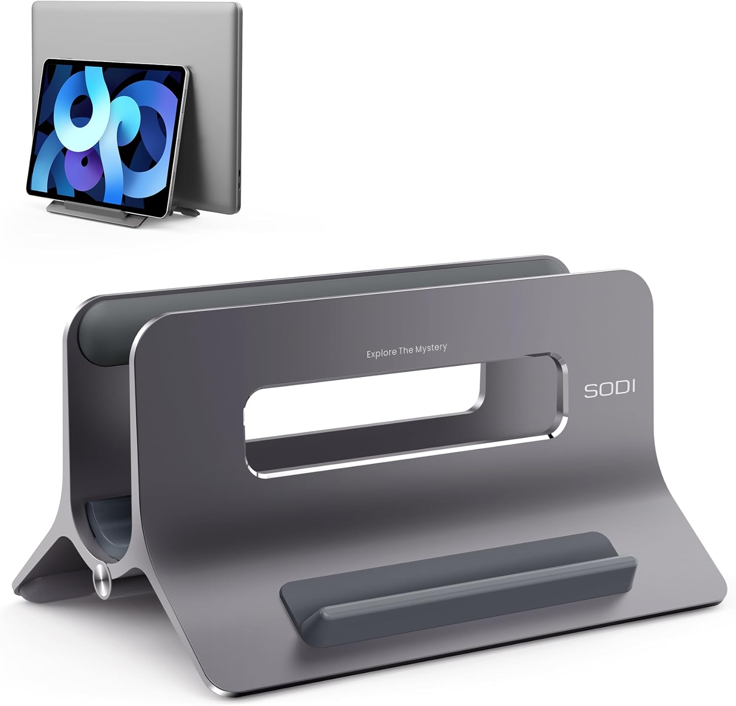 SODI Vertical Laptop Stand for Desk, Gravity Auto Lock MacBook Stand, Aluminum Laptop Holder Vertical Compatible with MacBook Pro, Air, Tablet, Space-Saving Organize Work & Home Office, Gray