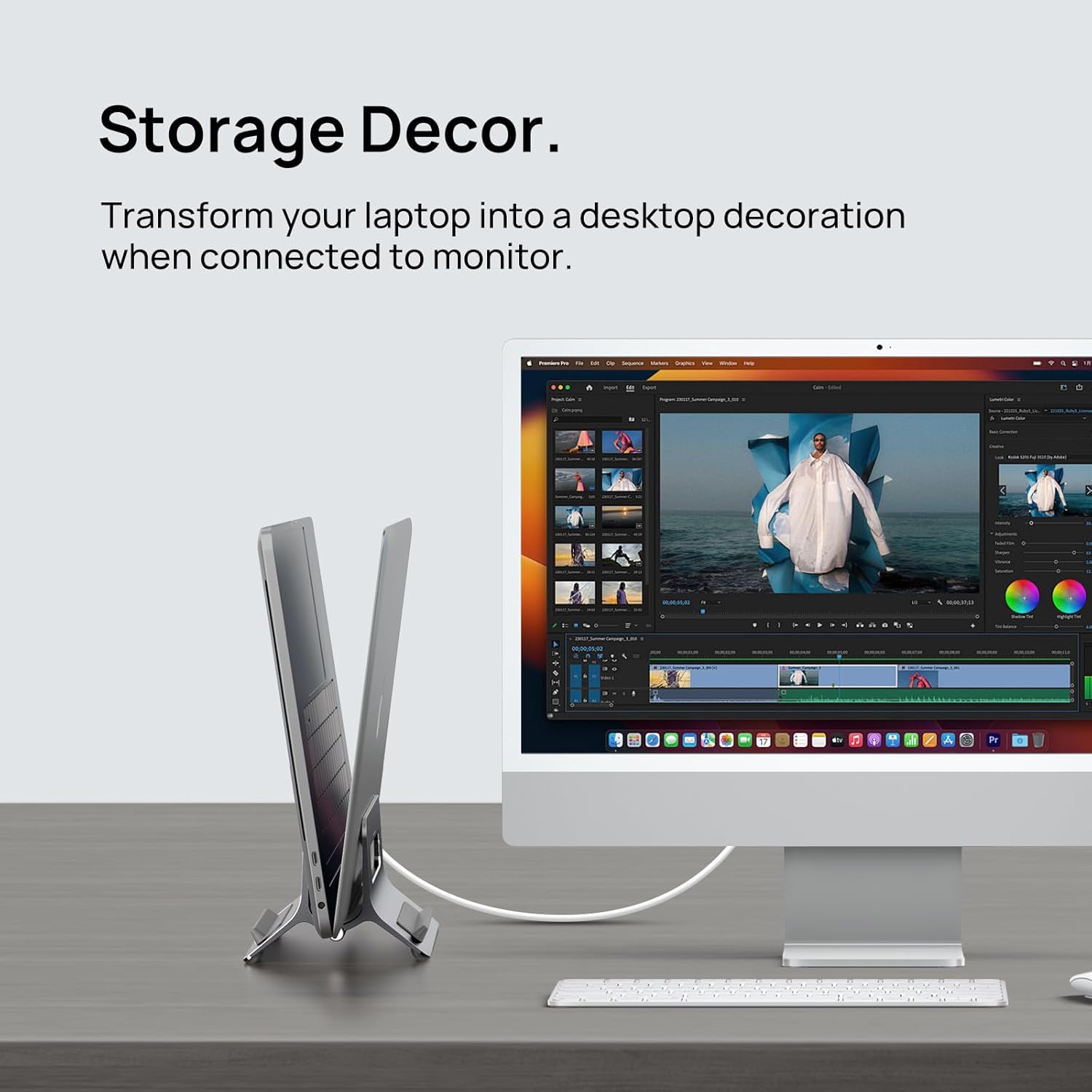 - 【Durable & Stable】Made of premium aluminum alloy with sandblasted and CNC-machined finishes for a MacBook-like texture, the laptop holder vertical is durable and stable. Featuring high-quality silicone pads that keep your laptop secure, preventing from scratches and sliding.