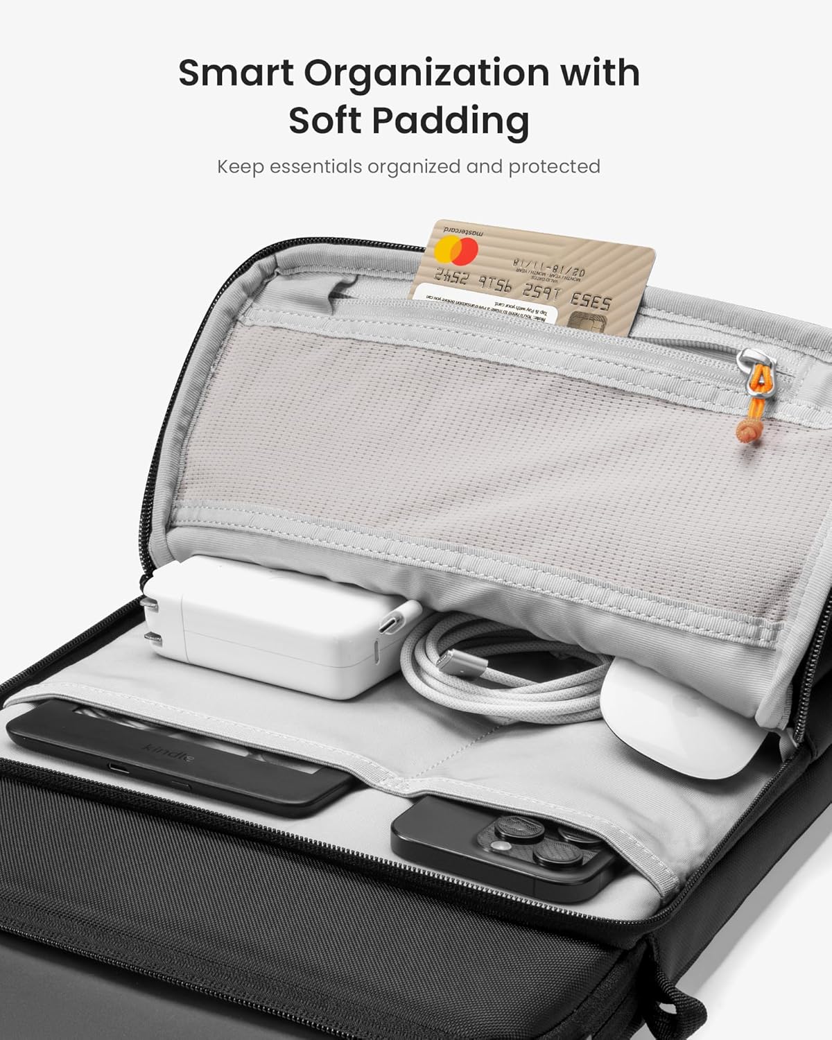 - Large Capacity with Patented Design: Thanks to a large number of inner compartments, all accessories are always neatly sorted; The clever, organized design offers a main compartment for your laptop and a front pocket with organized space for iPad and business essentials