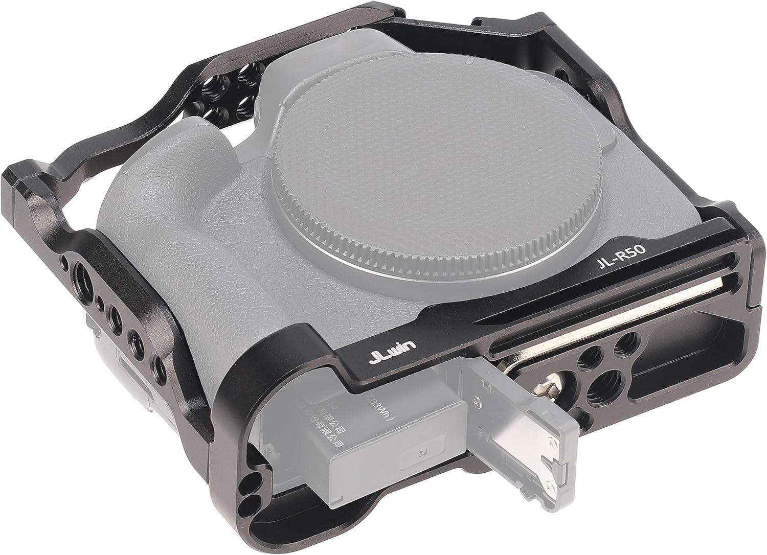 - Hersmay EOS R50 Cage retains access to the controls and the hot shoe of the camera. The cage is made of a high-quality aluminum alloy and is a solid piece of metal that is very resistant to oxidation and will stand the test of time.