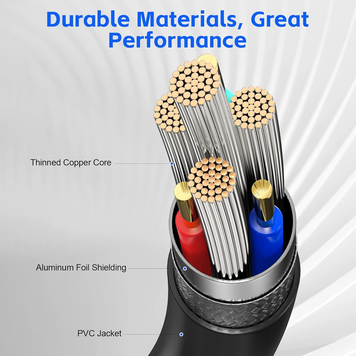- Durable and Stable: The use of corrosion resistant tinned bare copper conductor, multi-layer shielding, minimize interference, ensure the stability of transmission and charging. PVC jacket ensures the flexibility of the wire, and can withstand 15000+ bending test, effectively improve the service life of the cable