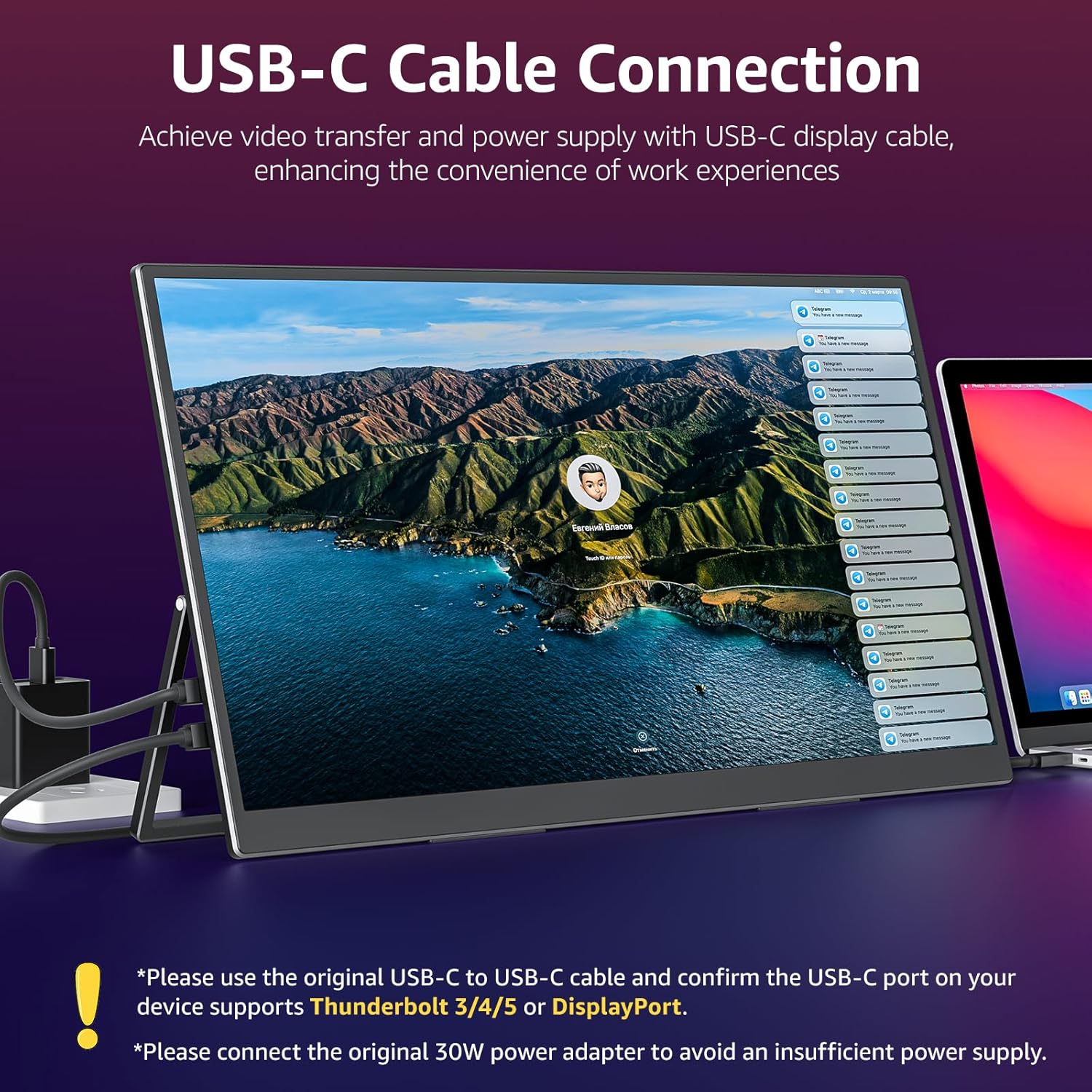 - Wide Compatibility, Well Designed: With two USB-C ports and one upgraded standard HDMI port, the VisionOwl portable screen can be easily connected to any major device on the market, such as all Apple MacBooks, Surface, laptops, PC, Xbox, PS5, and more. If your device has a Thunderbolt 3/4/5 or Full-Featured USB-C port, all you need is a single USB-C to USB-C cable to connect without any hassle