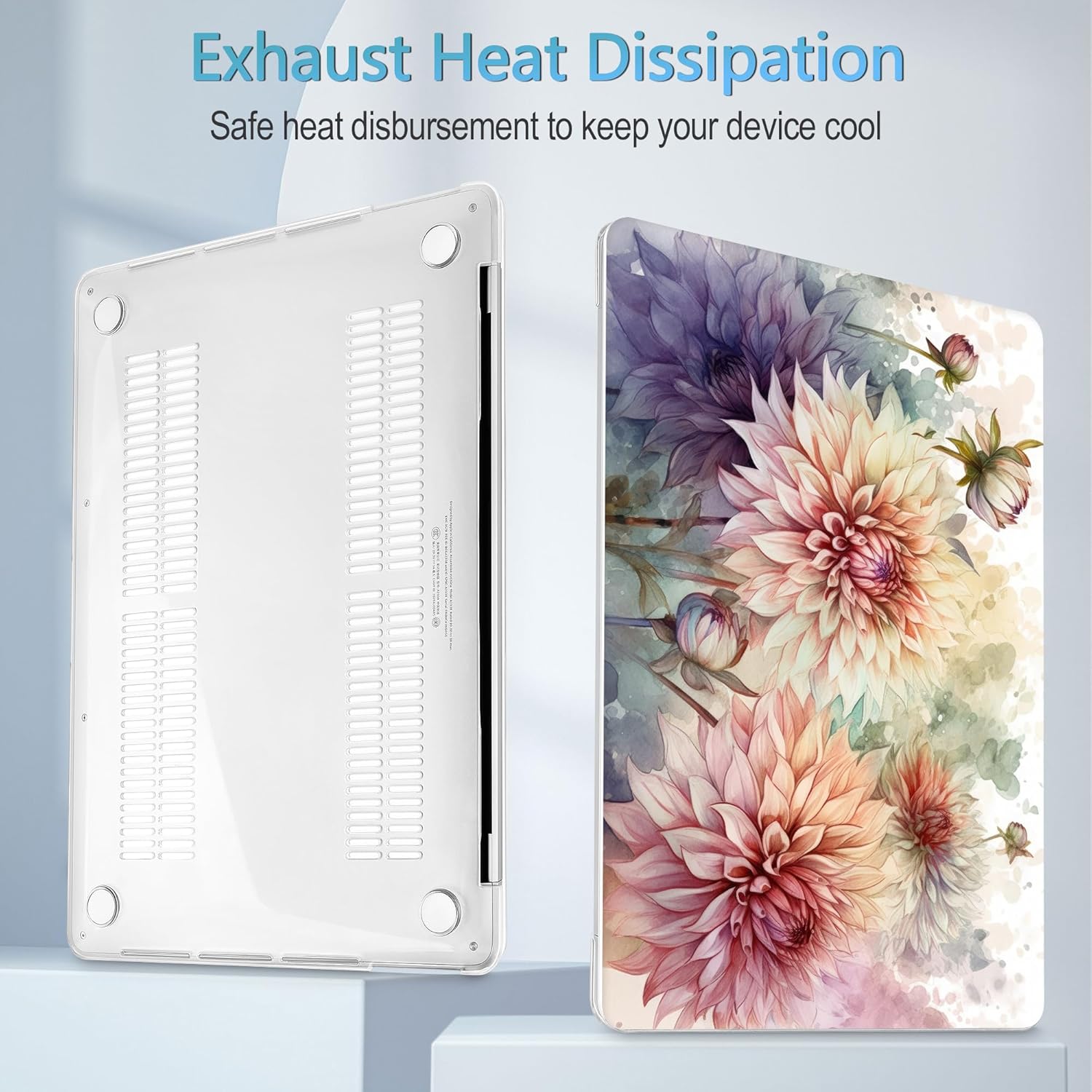 Mektron for MacBook Pro 13-inch Case 2022 2021 2020 Release A2338 M2 M1 A2289 A2251, Printed Plastic Hard Shell Cover for New MacBook Pro 13.3-inch Touch Bar Fits Touch ID, Watercolor Dahlias