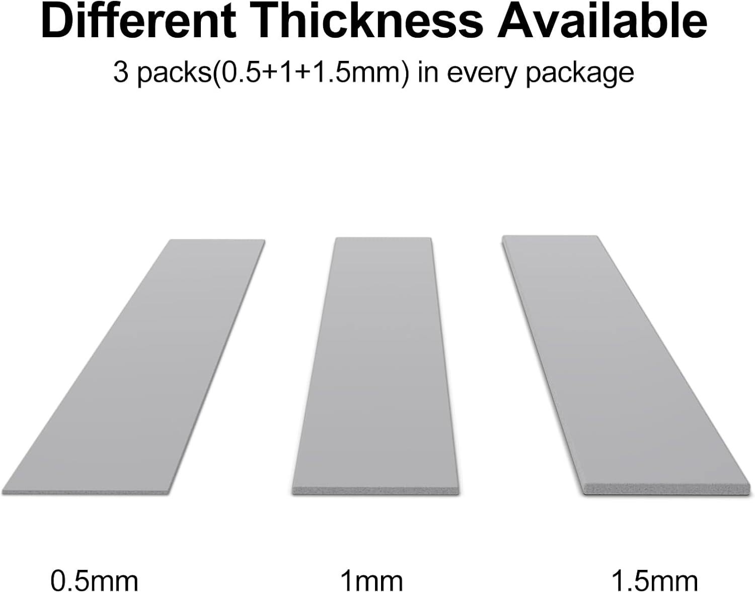 Aairhut 3 Pack 13 W/m.K Thermal Pads, 120 x 20 mm x [0.5 mm + 1 mm + 1.5 mm] Highly Efficient Thermal Conductivity Silicone Cooling Pads for Laptop Heatsink CPU GPU SSD IC LED Cooler
