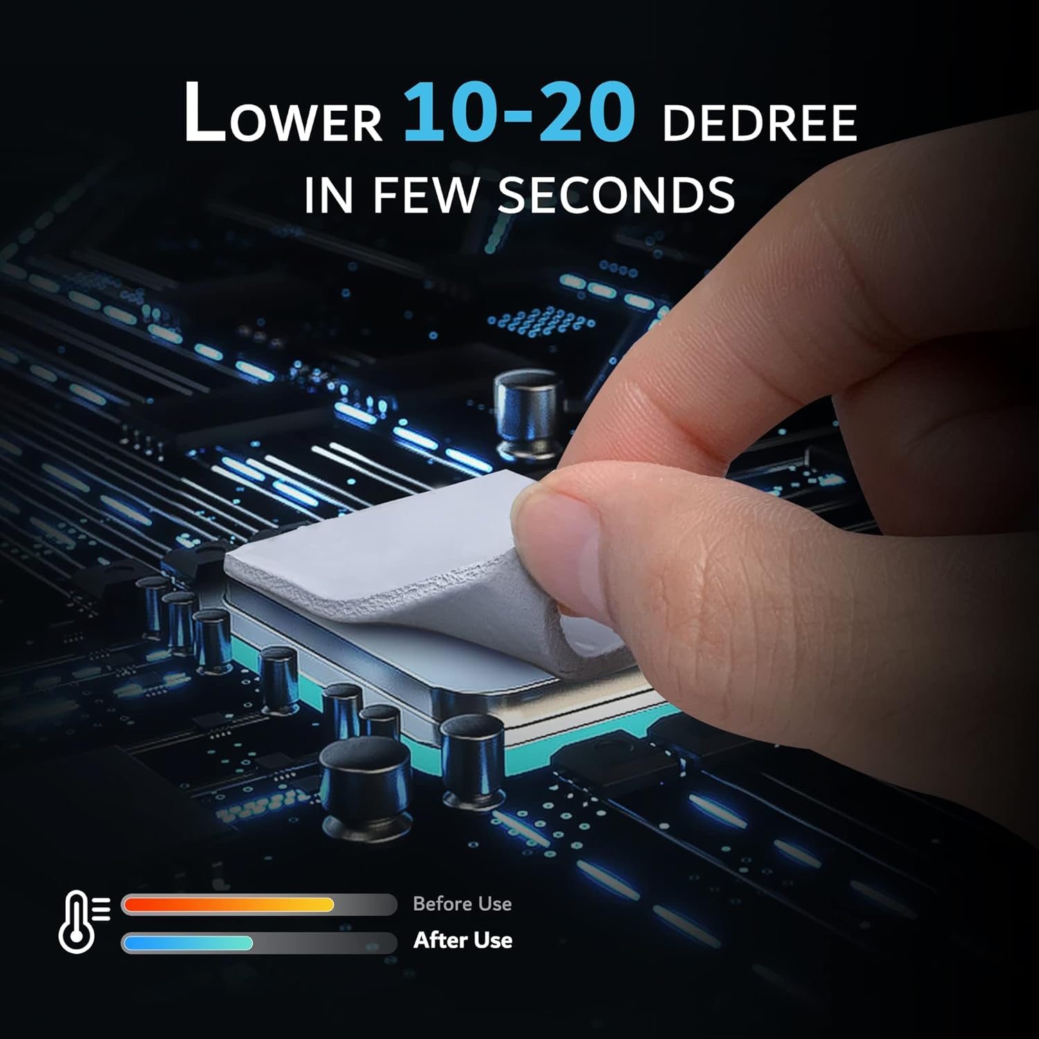 - Wide Application -- Perfect for electronics PCB surfaces, controllers, CPUs, GPUs, radiators, power supplies, VAG cards, hard disks, computers, laptops, graphics cards (3080/3090), game consoles, car electrical appliances, microwave ovens, TVs, set-top boxes, DC-DC converters, PDP LED ICs, SMD DIPs, and more. Embrace versatile cooling solutions now!