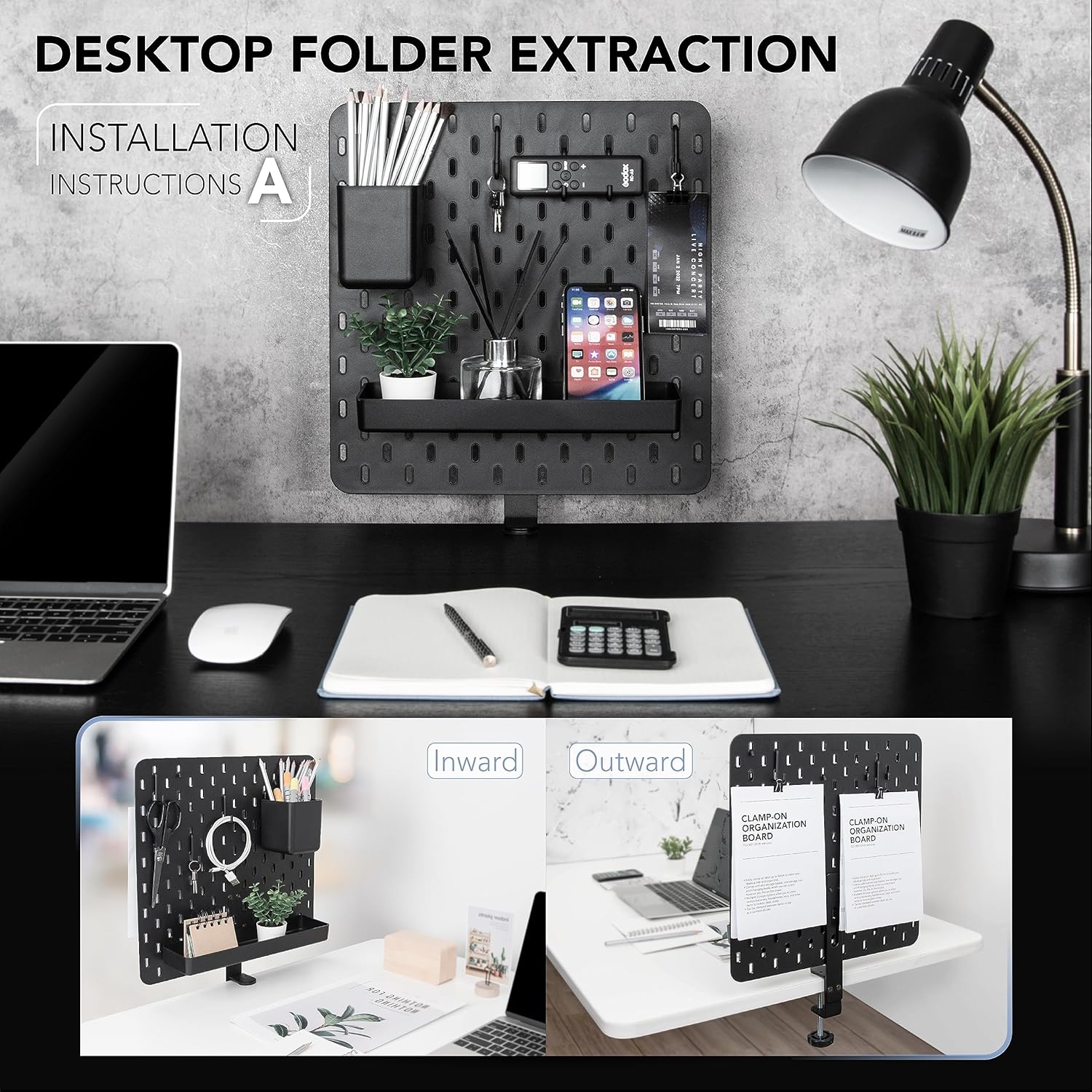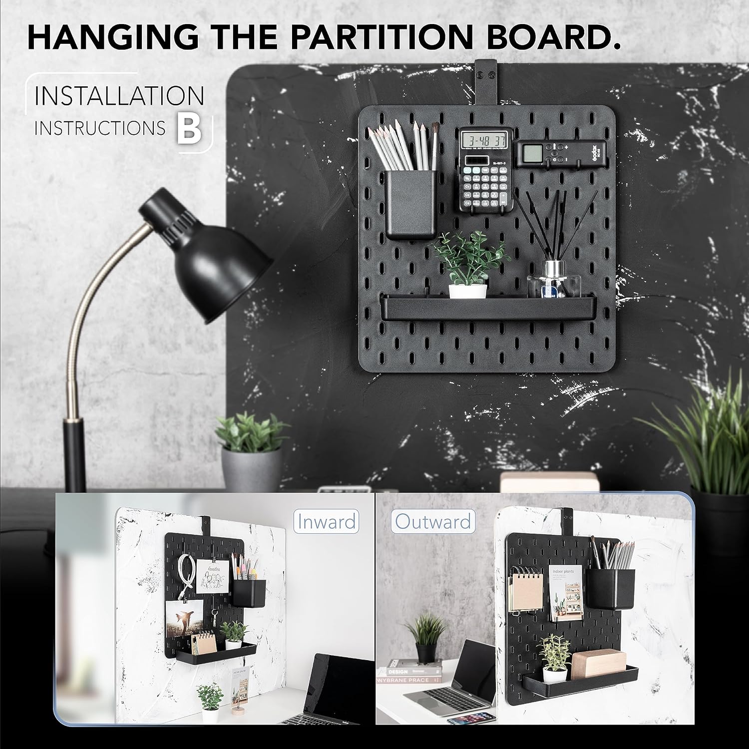 EHO Clamp-On Desk Pegboard, 13.5 x 14 inch Privacy Divider, Desk Partition Panel, No-Drill Desk Mounted Organizer, Combination Peg Board for Office, Gaming, Home, Plants, Black