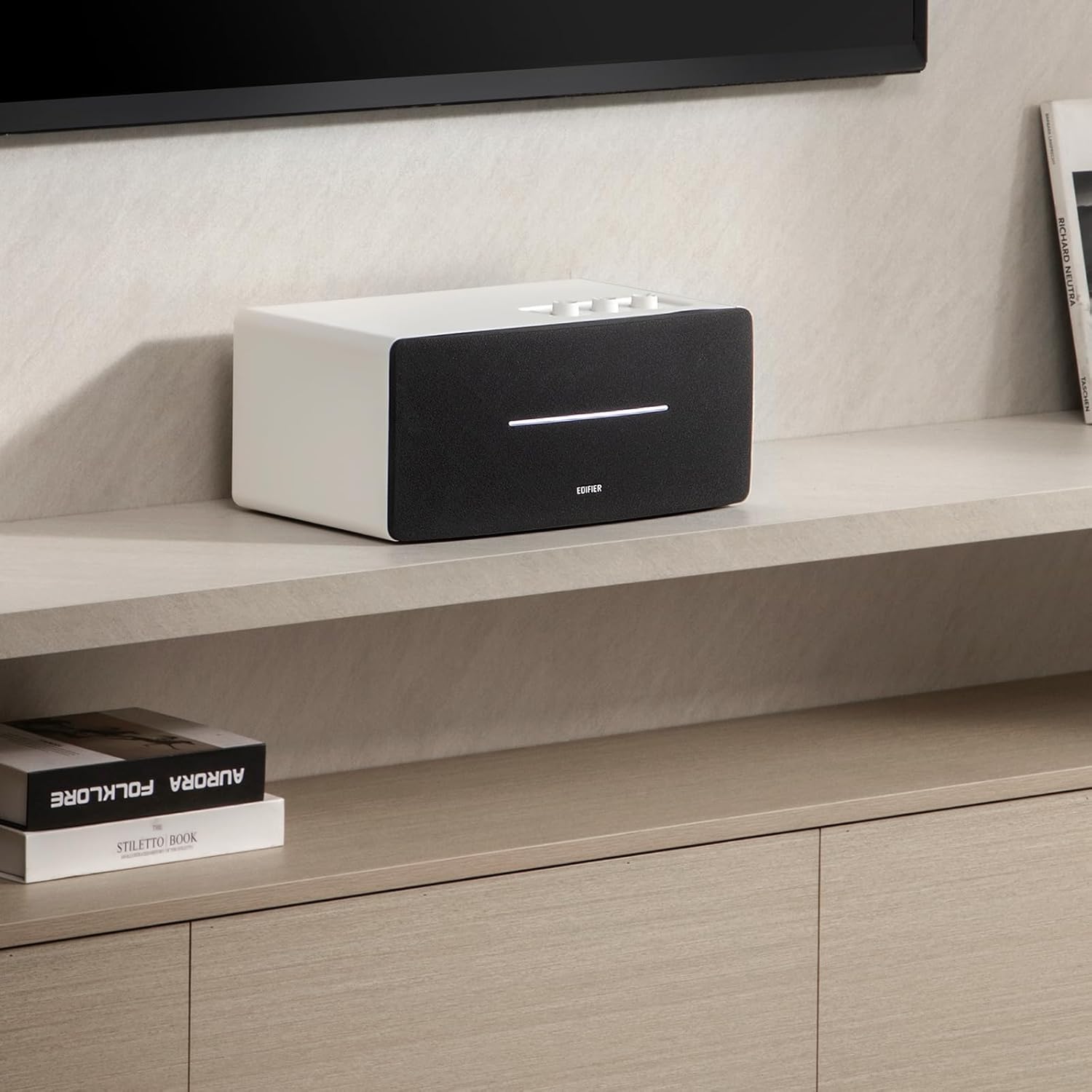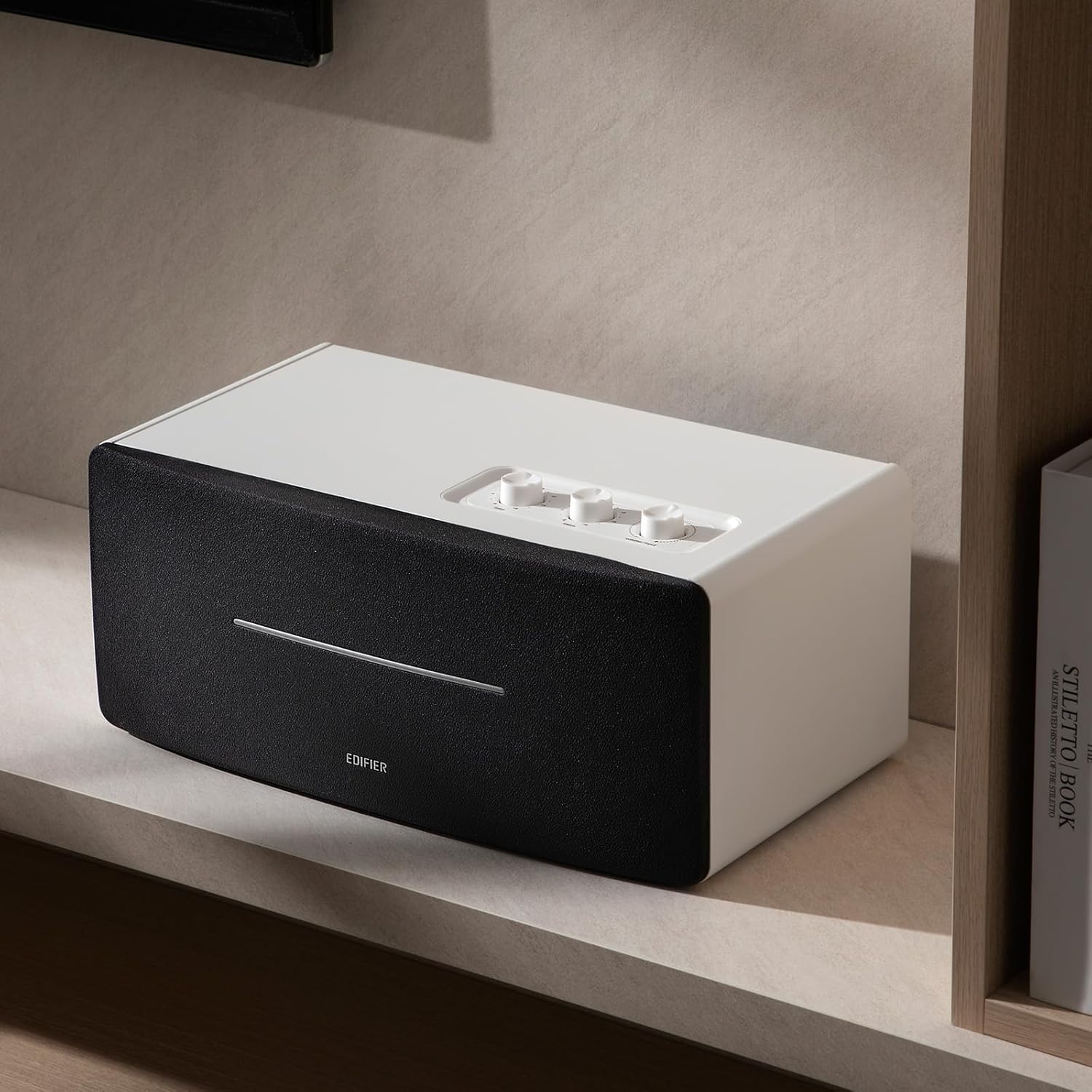 Edifier D12 Integrated Desktop Computer Speakers with Bluetooth 5.0, Wireless Stereo Tabletop Speaker 70 Watts RMS with Subwoofer Line Out, RCA, Aux Input for PC Monitor Laptop (White)
