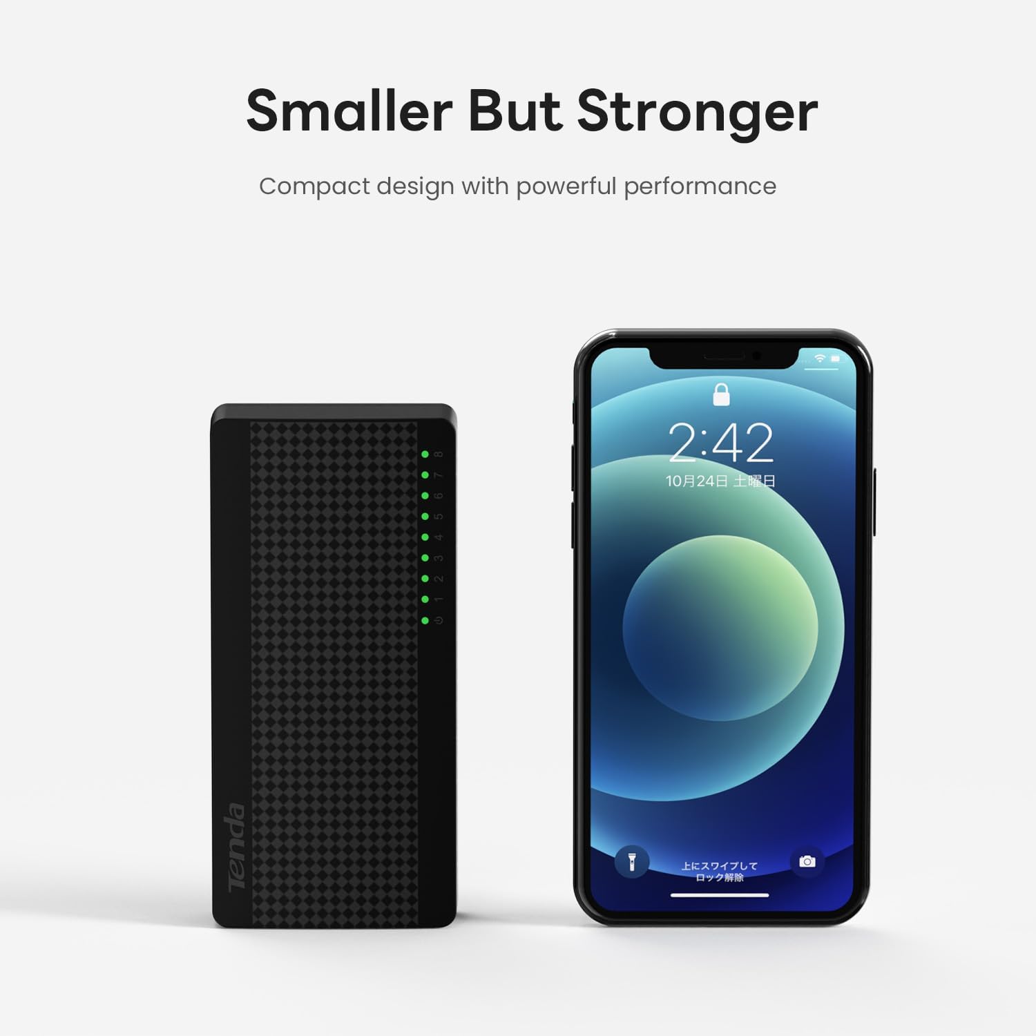 - 𝐌𝐢𝐧𝐢 & 𝐅𝐚𝐬𝐡𝐢𝐨𝐧𝐚𝐛𝐥𝐞: Designed with a compact profile, the Tenda SG108 takes up minimal space while maximizing efficiency, making it an elegant addition to any home or office setup