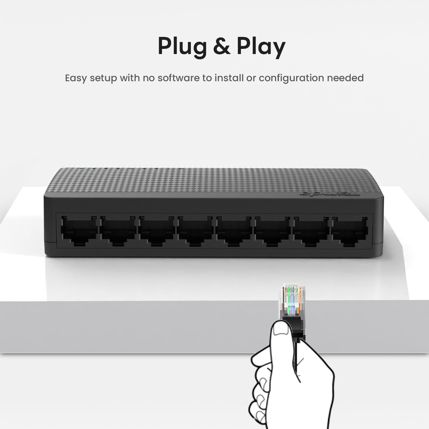 - 𝐏𝐥𝐮𝐠 𝐚𝐧𝐝 𝐏𝐥𝐚𝐲: The SG108 offers effortless installation with no configuration or software required. Its silent operation makes it the perfect 8-port gigabit switch for any setting, ensuring reliable connectivity