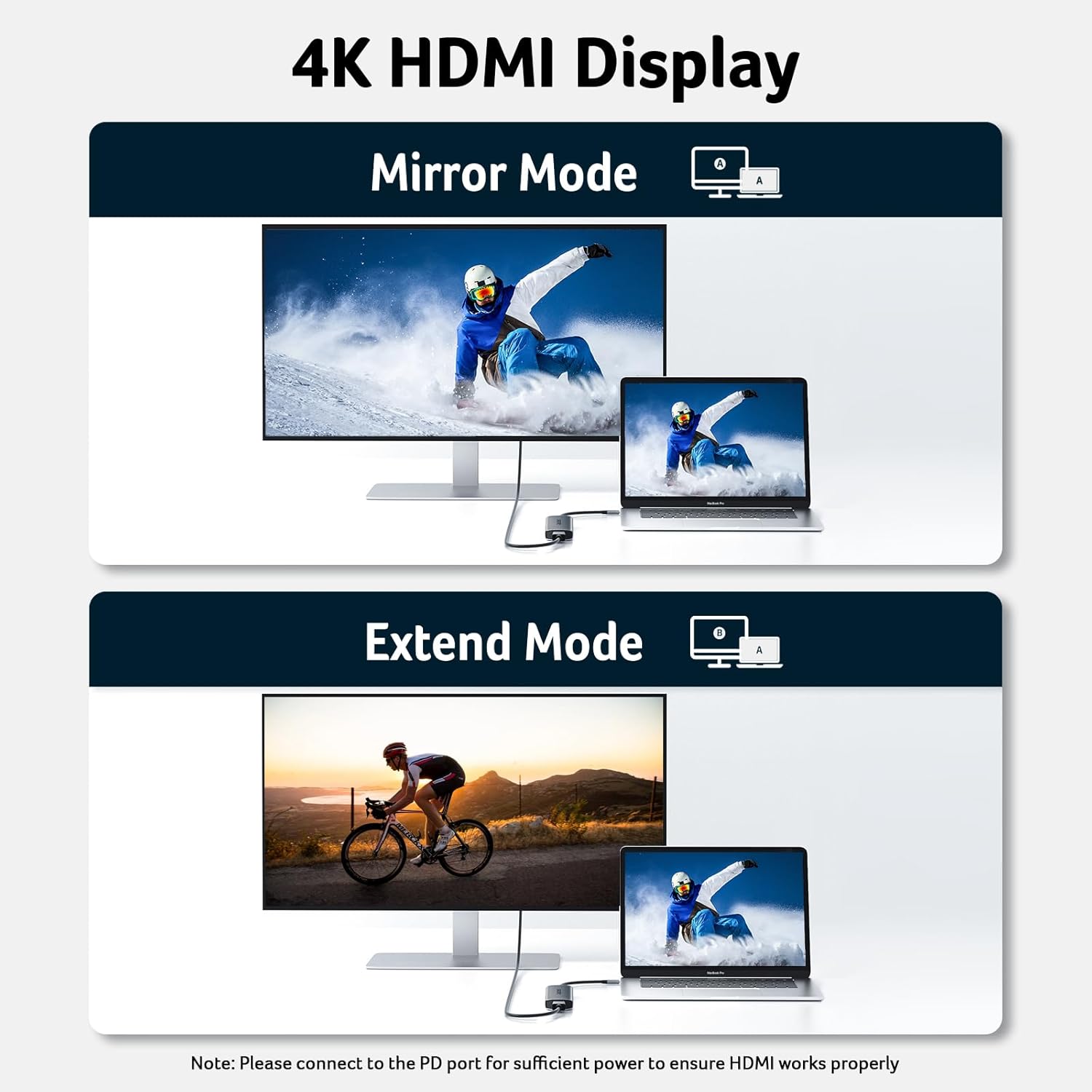 - [4K USB-C to HDMI Adapter] This USB C to hdmi adapter can mirror or extend your screen with an HDMI port. You can use USBC hub to directly stream 4K@30Hz or full HD 1080P video to HDTV, monitors, and projector, which also bring an immersive 3D resolution experience. 📌Note: USB-C devices should support USB Type-C DP Alt Mode(Video transmission function).
