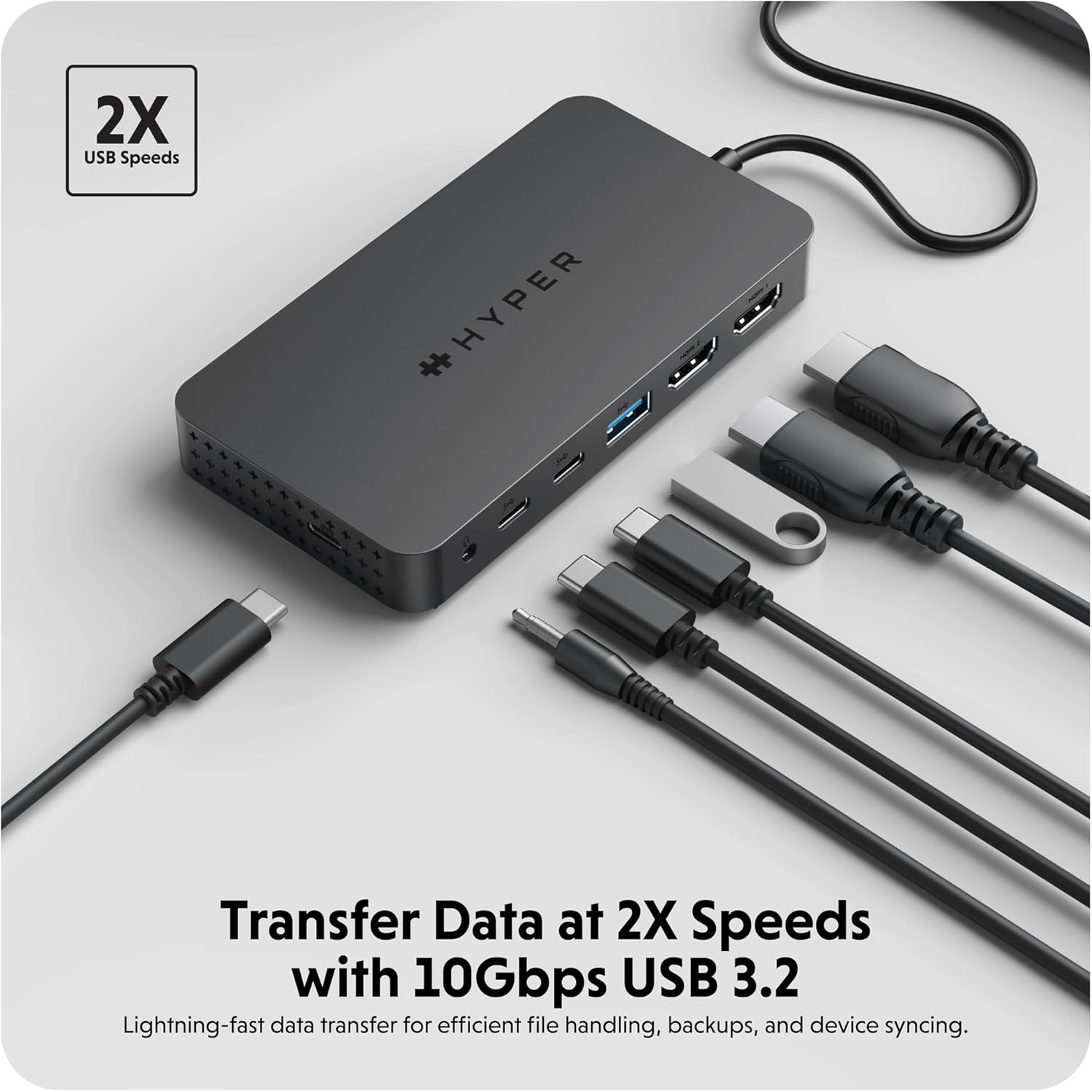 - Dual Extended 4K Monitors for the M1 & M2 MacBook, PC, and Chromebook: Enhance your productivity and multitasking capabilities with Hyper's travel accessories. By providing a spacious and immersive workspace, allowing users to simultaneously view and work on multiple high-resolution content, such as videos, images, documents, and applications, with smooth and crisp visuals.