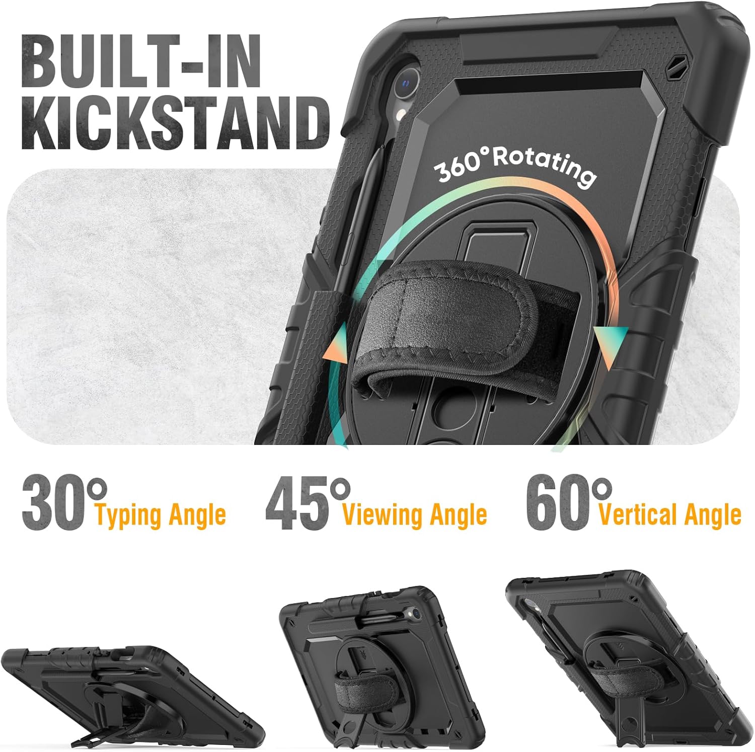 - 360 Rotating Hand Strap & Stand : With adjustable swivel hand strap and stand, you can hold the tab S10 FE / S9 fe 10.9 inch / tab s9 11 inch safely by one hand and find the most comfortable viewing angle you need. The built-in stand provides a stable supports, with viewing/drawing/typing angles you need, and it can be folded up when not in use.