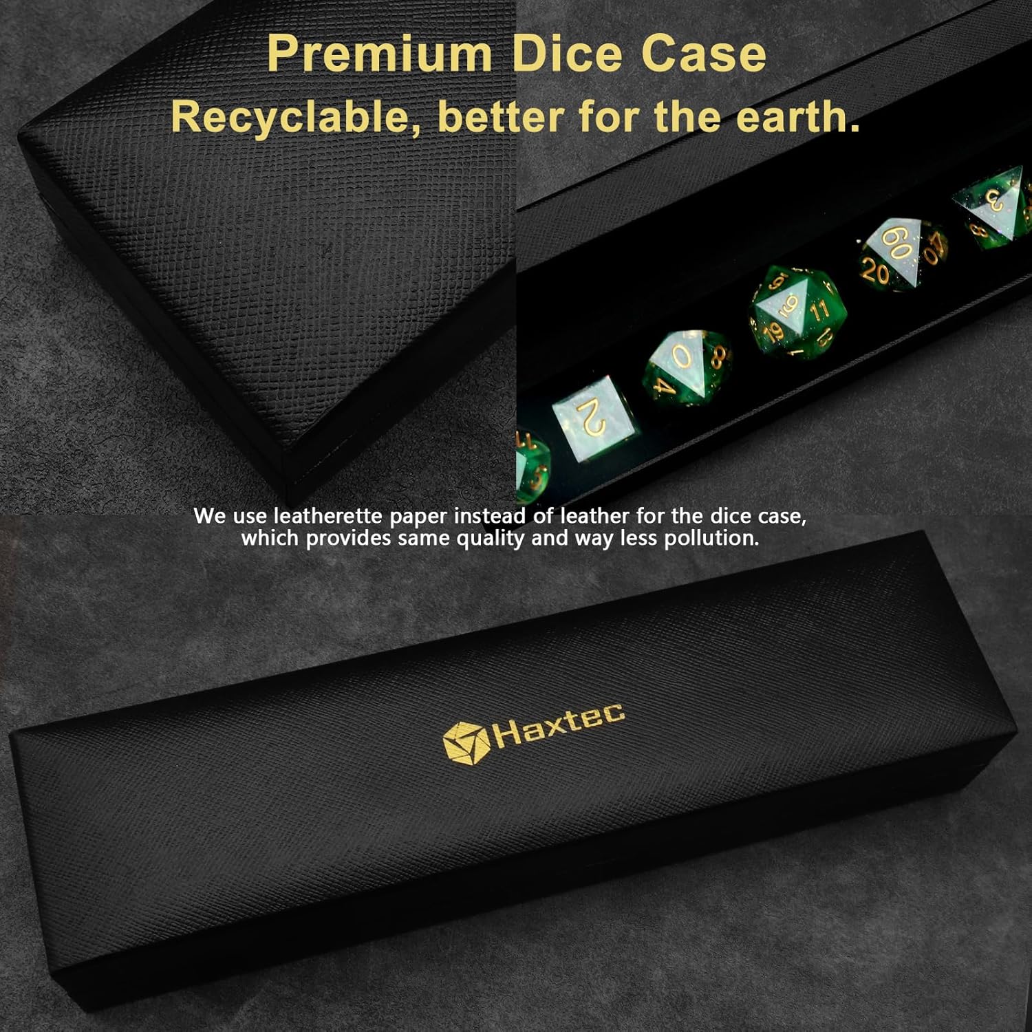 Haxtec Glitter DND Dice Set Sharp Edge Dice with Dice Case Handmade Green Resin D&D Dice Set for TTRPGs Compatible with Dungeons and Dragons Gifts