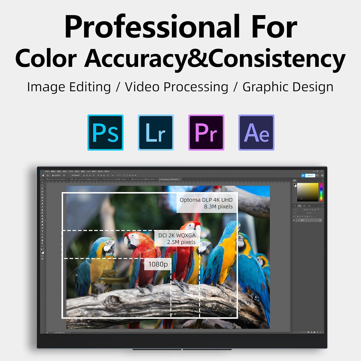 - Professional for Color Grading: The color gamut DCI-P3 covers a 25% larger area of the chromaticity diagram, pretty similar to AdobeRGB. This 100% DCI-P3 portable display can output more saturated and vivid colors across the board. Best for color grading, colorists and designers will have more enjoy in post-production, and creatively use color to bring mood, excitement, and drama to a scene