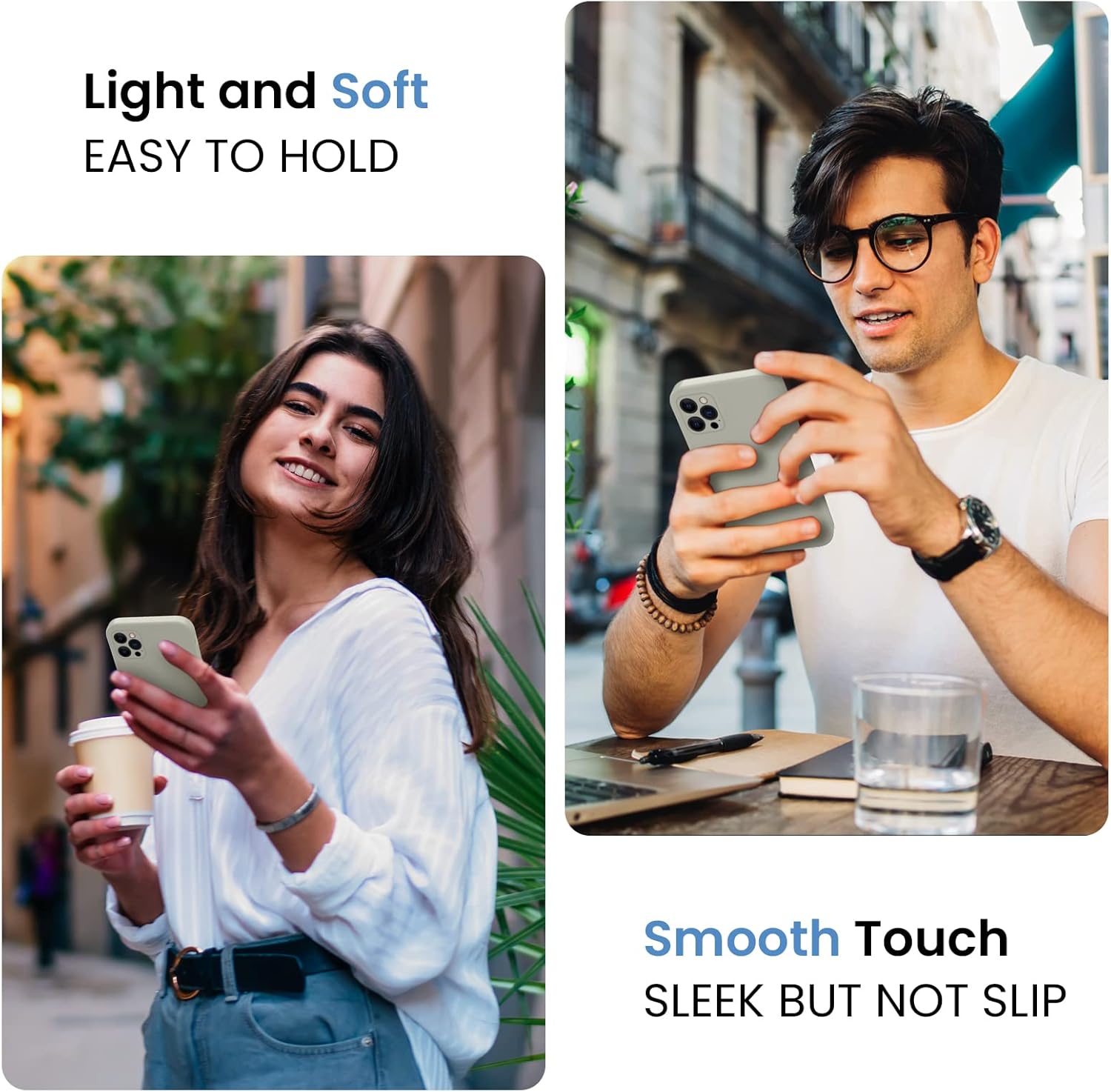FireNova Designed for iPhone 13 Pro Case, Silicone Upgraded [Camera Protection] Phone Case with [2 Screen Protectors], Soft Anti-Scratch Microfiber Lining Inside, 6.1 inch, Stone