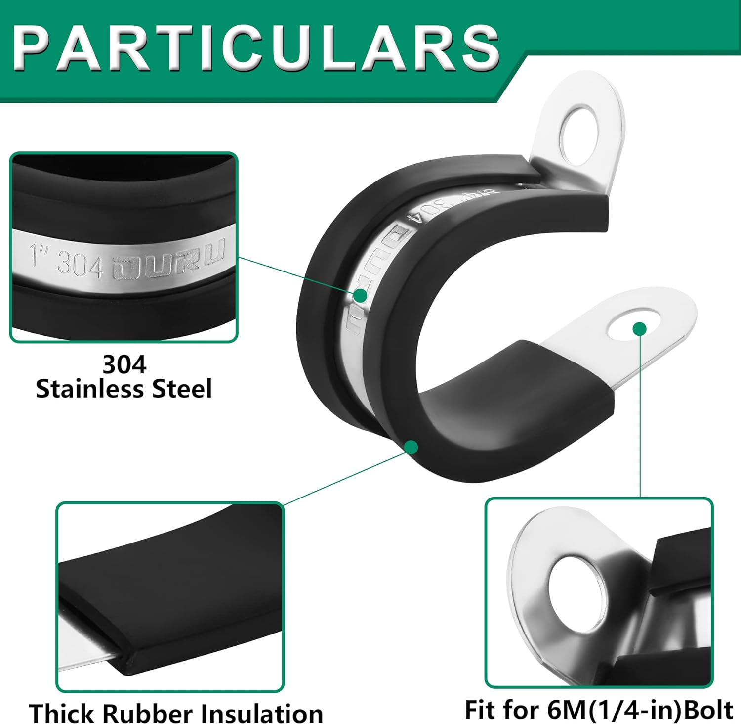 - OURU Insulated Cable Clamps Kit —The stainless steel hose cable clamps box set contains 50pcs 1-1/2" p-clamps.Fit for 6M( 1/4 inch) screw bolt to through the screw hole