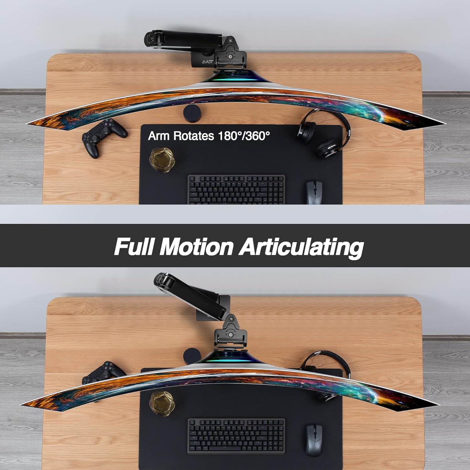 AVLT Single Monitor Arm Desk Mount for 34 to 57 in Screens – Fits One 44 lb Heavy Duty Monitor – Full Motion Height, Swivel, Tilt, Rotation – VESA 200x200, 200x100, 100x100, 75x75 – Black